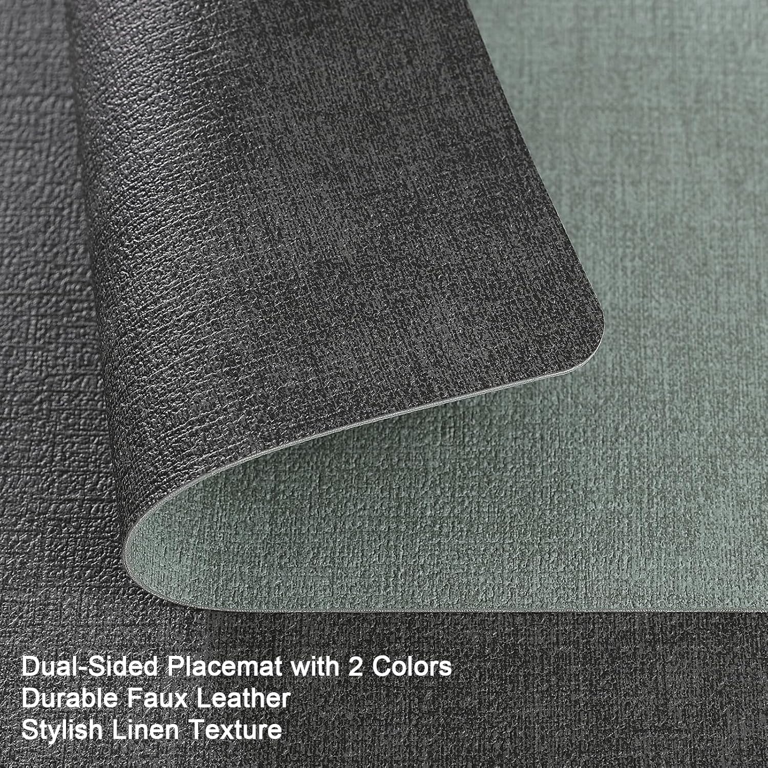 Myir JUN Dual Sided Faux Leather Placemats Set of 4 for Indoor Outdoor Dining Tables, Square Non-Slip Washable Wipeable Table Mats (Gray Sage Green)