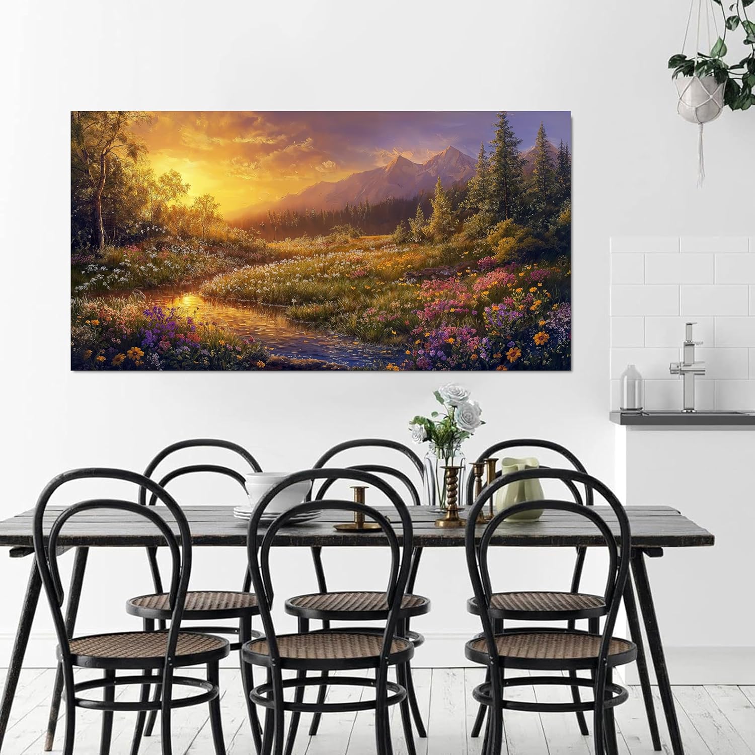 Canvas Wall Art Decor Wall Art Pictures for Living Room Artwork for Walls Vintage Landscape Art Prints Canvas Art Wall Decor Countryside River Wall Art Decorations Bedroom Home Wall Decor 20" X 40"