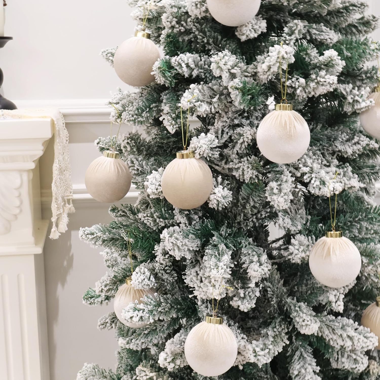 3.15inch Velvet Ornaments for Christmas Tree, 15pcs Flocked Christmas Ornaments Decorations Balls Set Decor Beige