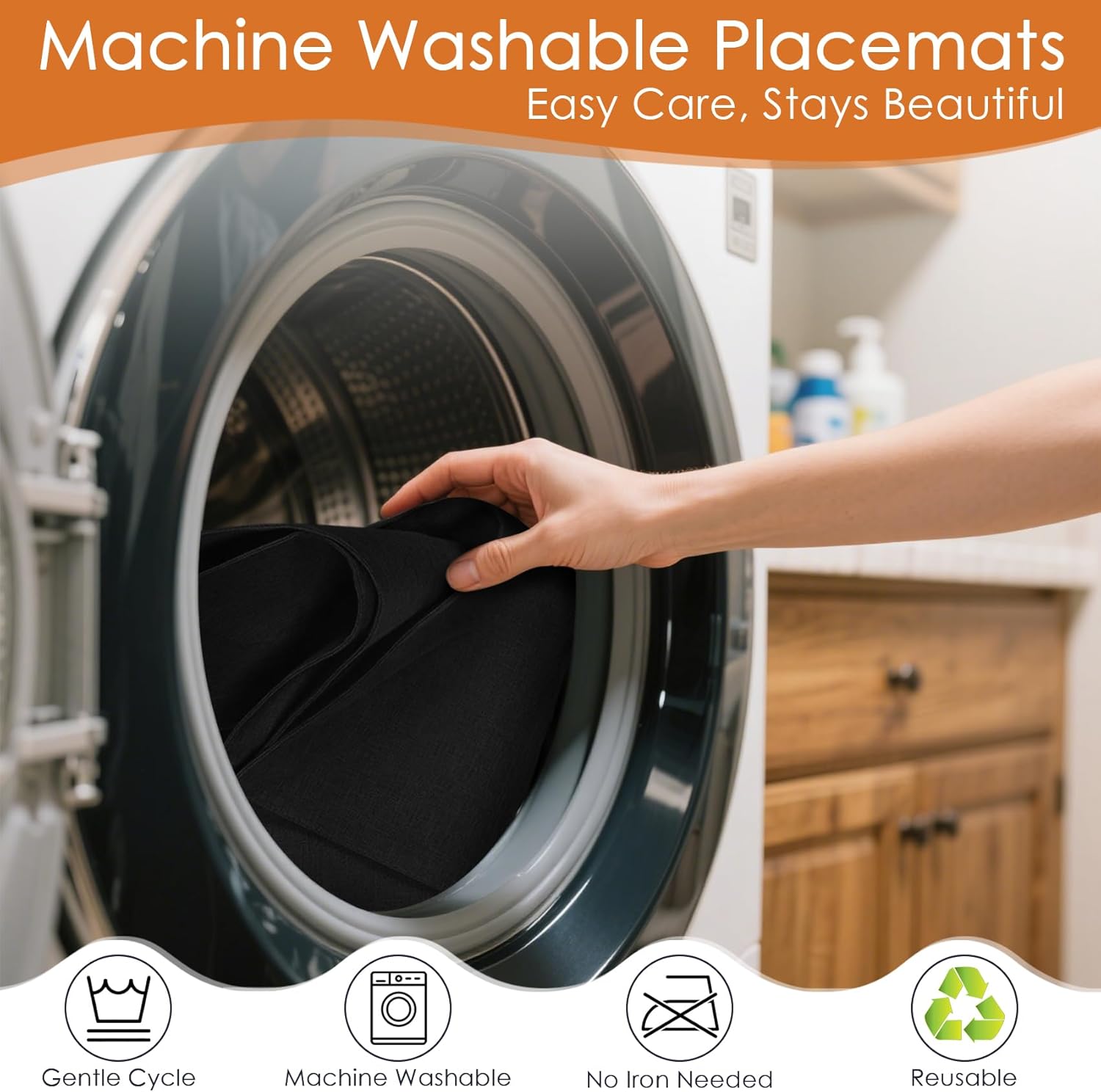- Effortless Cleaning & Care: These machine washable placemats are easy to clean and maintain - simply use a gentle cycle and smooth with a low-temperature iron when needed. No hassle, just simple upkeep for everyday use.