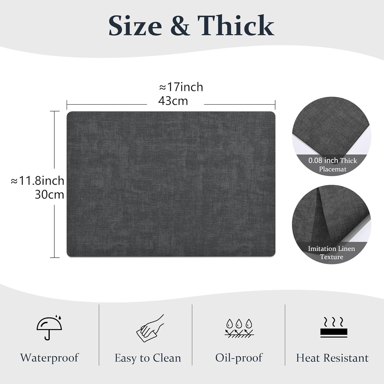 FROMHEART Faux Leather Placemats Set of 4–Waterproof,Heat/Oil Stain-Resistant PU Table Mat–Reversible,Non-Slip,Easy to Clean Place Mats for Kitchen,Dining,Indoor/Outdoor,(Dark Grey,11.8" x 17")