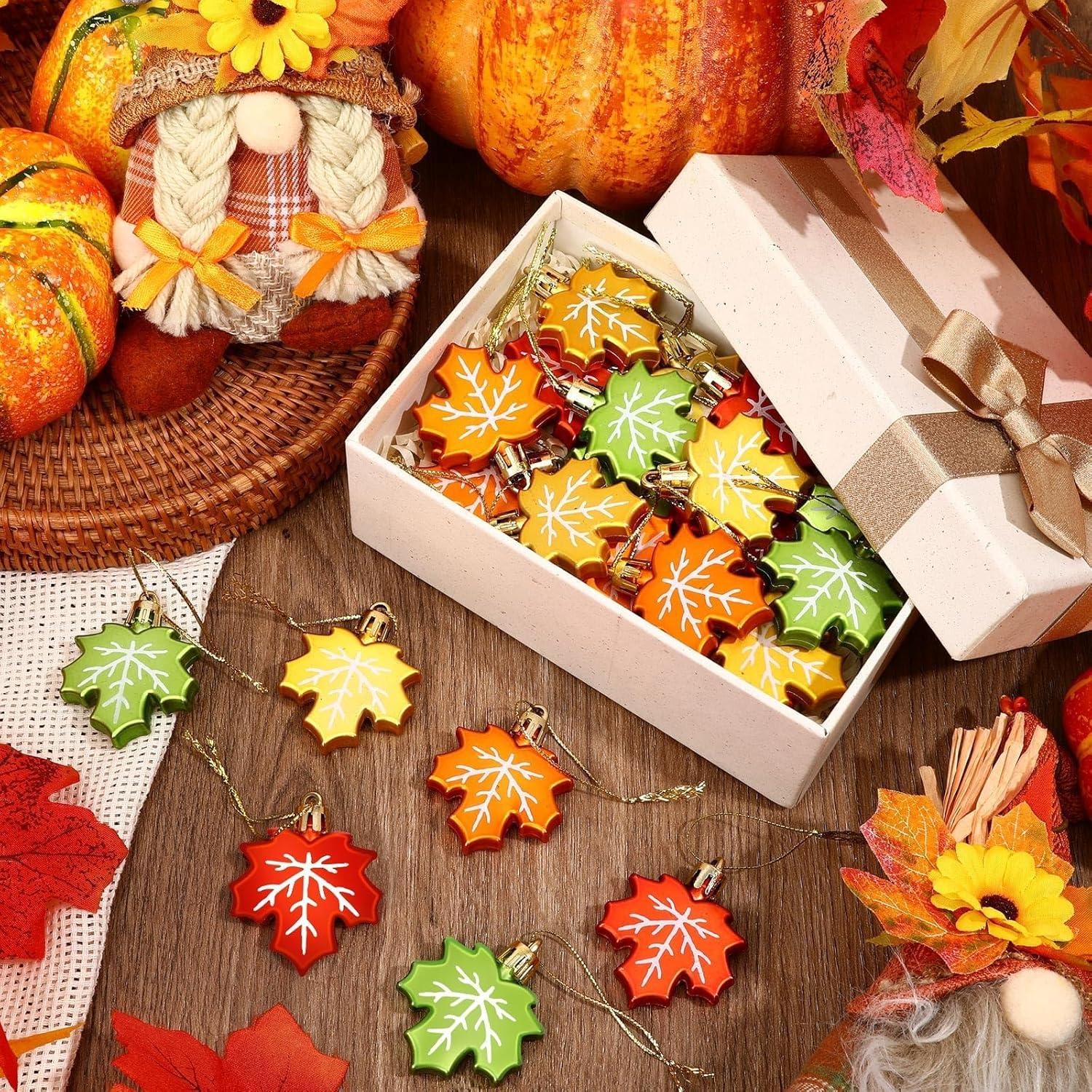 - Ideal Choice for Autumn Thanksgiving Decoration: The unique maple leaf shape design is a classic Thanksgiving element, symbolizing the harvest and joy in autumn. These lovely hanging fall leaves ornaments are the ideal choice for autumn Thanksgiving decoration. Fall maple leaf ornaments can be widely used in autumn party decoration, desktop decoration, birthday party decoration, handicraft, celebrations, Halloween, Thanksgiving, weddings, harvest activities, etc to add festival atmosphere