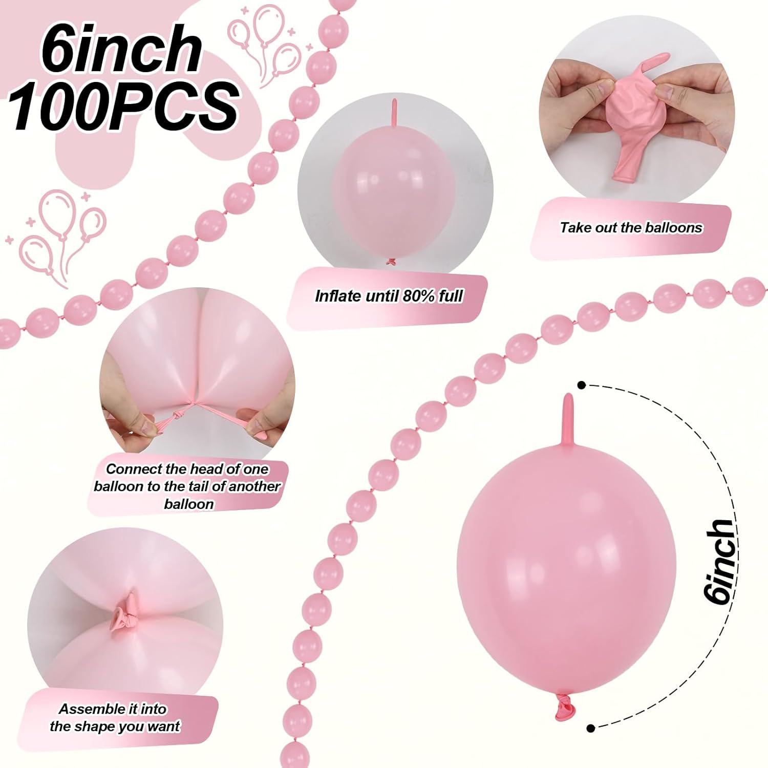 - High Quality Chain Balloons - Our pastel pink balloons are made of high quality materials with excellent elasticity and toughness. Linkable balloons are not easy to break or leak, and can stay full for a long time. The linking balloons will not fall off or damage easily during use, providing reliable quality assurance for your decoration needs.