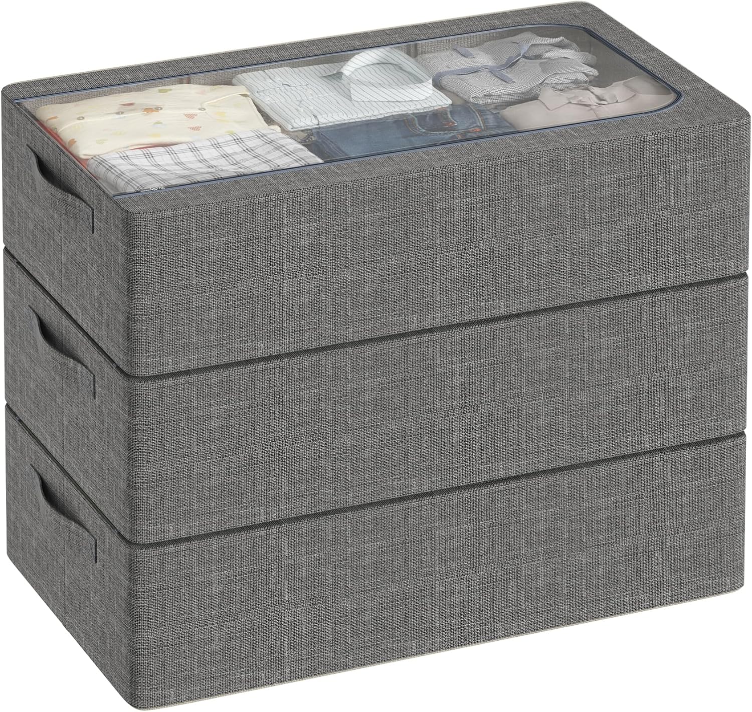 3PCS Under Bed Storage Bins with Metal Frame, Linen Fabric Frame Storage Box Clothes Organizer Bins, Underbed Container with Clear Window (Dark Grey, 23.6 x 13 x 6IN)