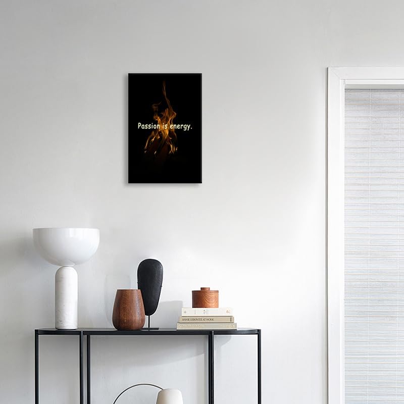 Motivational Wall Art Passion Is The Energy for Doing Anything Inspirational Quotes Canvas Posters Printed Artwork for Office Hallway Gym Bedroom Living Room Framed Ready to Hang [12" W X 18" H]