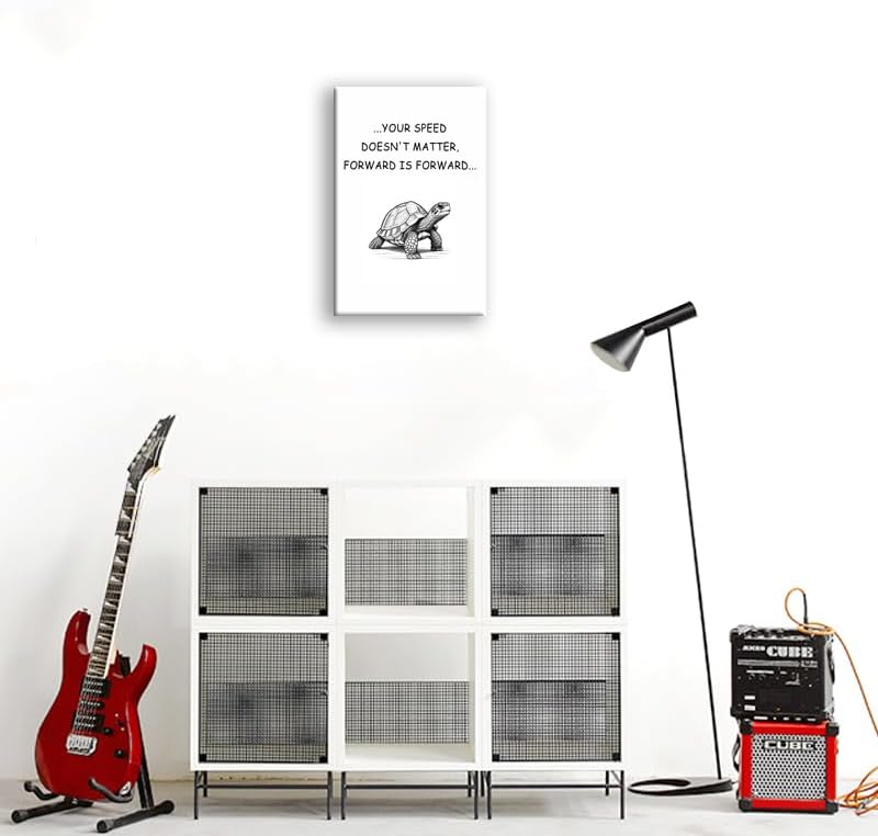 WYJDFART Turtle Motivational Quote ‘SPEED DOESN'T MATTER, FORWARD IS FORWARD...’ inspirational Wall Art Printed Modern Artwork For Office School Home Decor Framed Ready to Hang [12" W X 18" H]