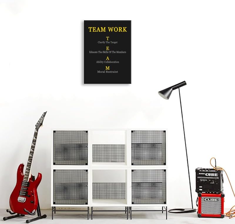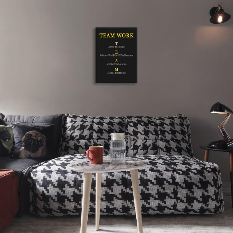 Team Work Enterprise Poster Inspirational Quotes Canvas Poster Printed Artwork Motivational Wall Decor for Company Office Group Bedroom Living Room Framed Ready to Hang[18" W X 24" H]