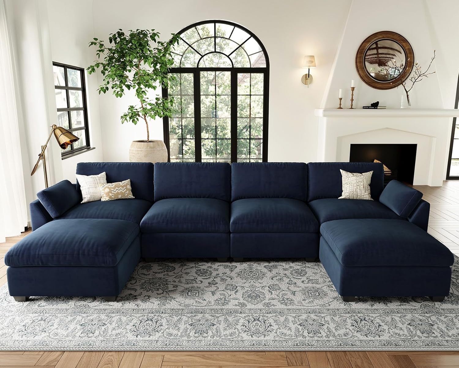 Belffin Sectional Couch with Extra Deep Seat,137.8" Cloud Modular Sectional Sofa,Convertible 6-Seater U Shaped Couches for Living Room,Oversized Comfy Velvet Blue Couch