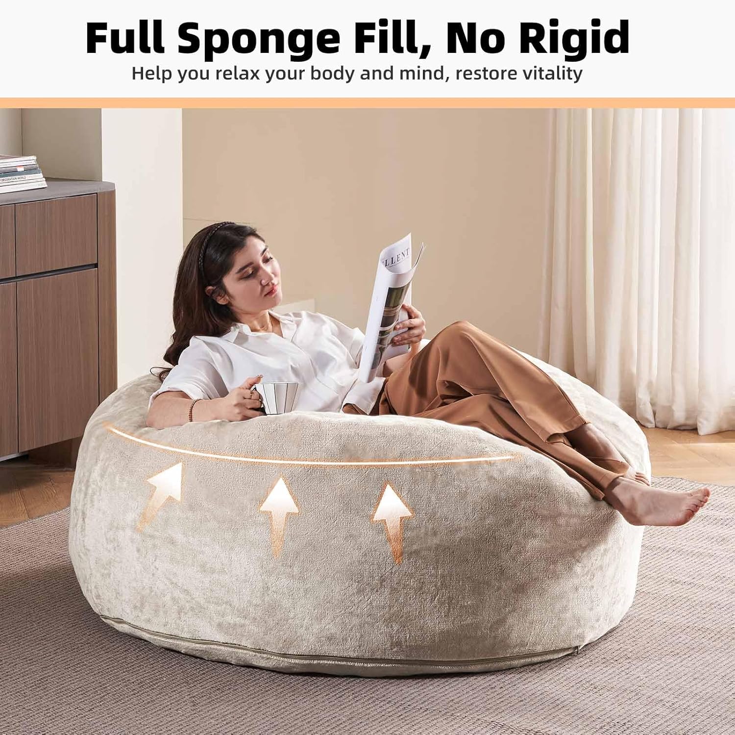 - [High-Rebound Memory Foam Filling]: This bean bag chair is filled with high-resilience memory foam provides you with comfort and support.It comes in a vacuumed bags for shipping reason. Once opened it will start to fluff up. Please allow 48 hours to make it fluffy.Shake the whole bean bag chair after using a period, it will bounce back with comfort.