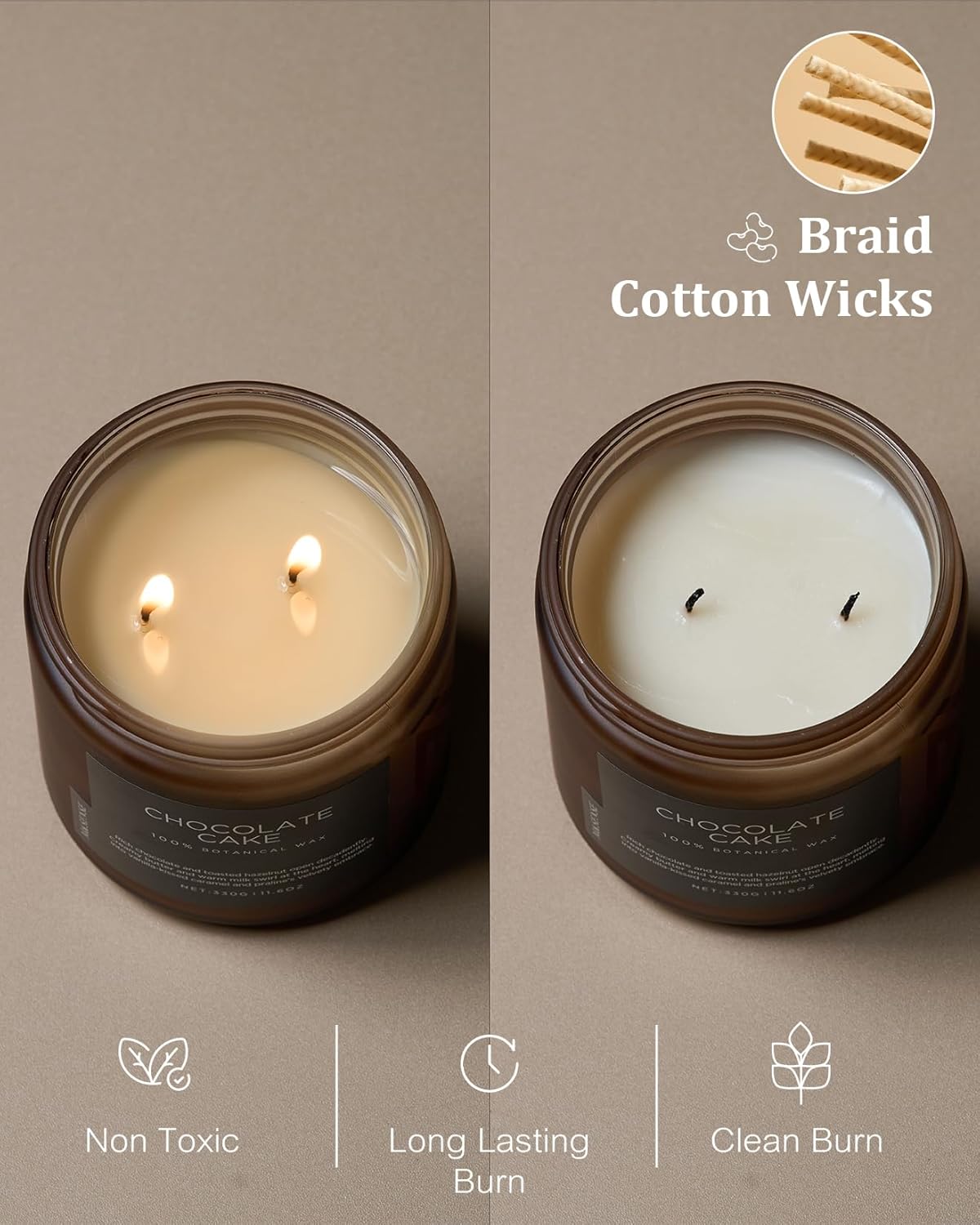 - Clean Consistent & Even Burn - Using 2 American made lead-free cotton wicks for a even burn result. They're cotton flat braid wicks with paper throughout, providing increased rigidity and burn more consistently than 100% cotton wicks. Designed to reduce carbon buildup which leads to black soot