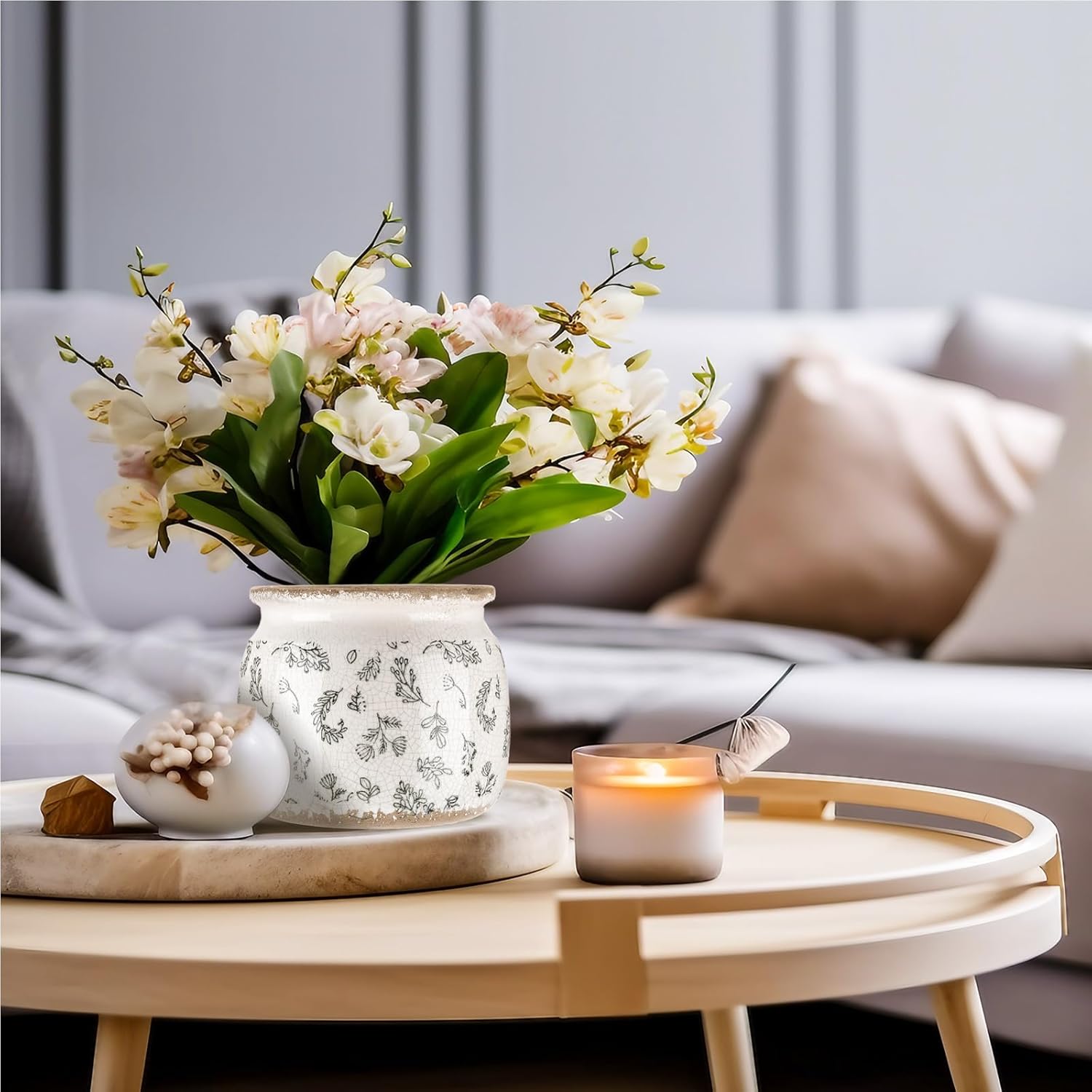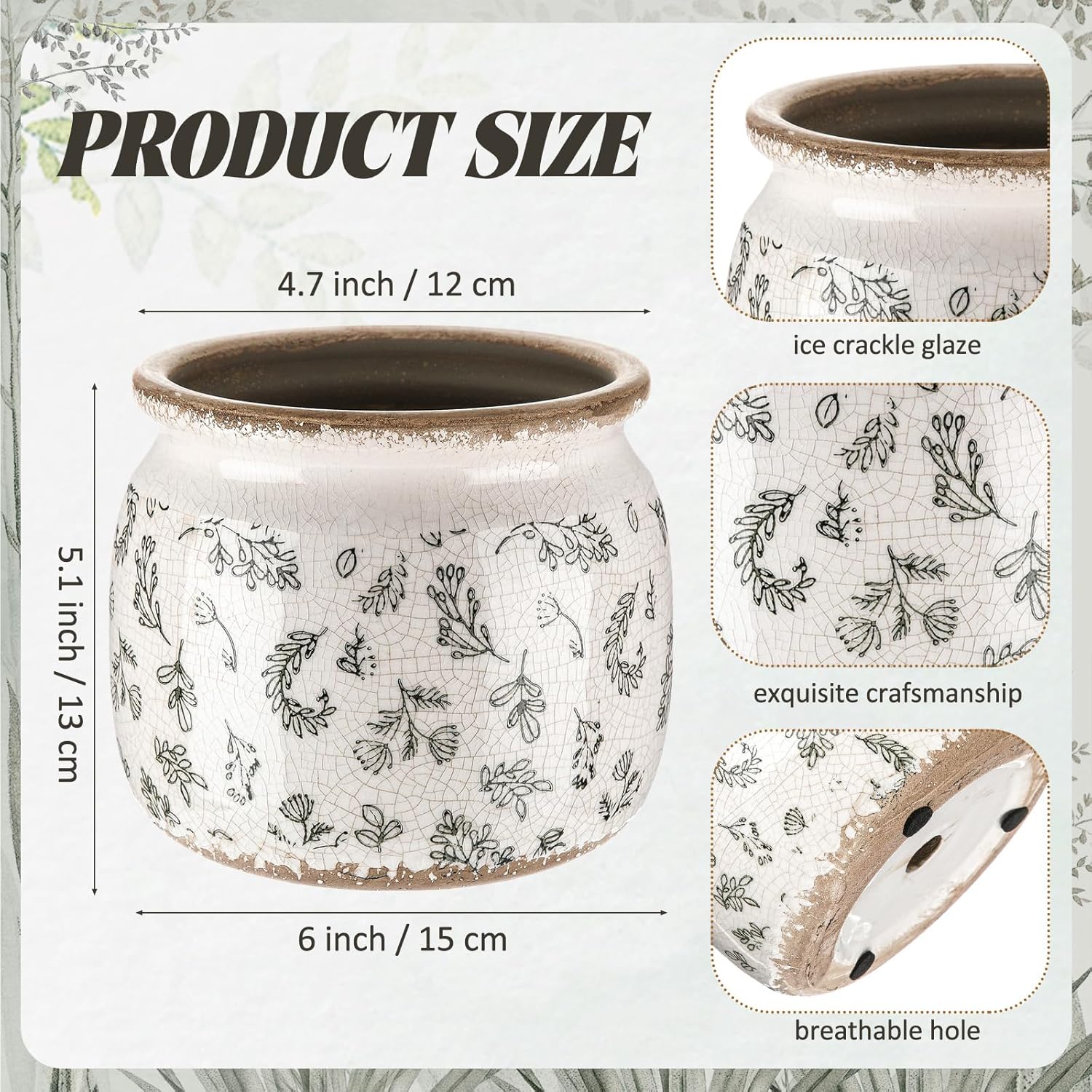 - Vintage Floral Design with Crackle Glaze: featuring a delicate wildflower pattern in soft green and beige tones, this ceramic plant pot adds a rustic, vintage charm to any space; The elegant crackle glaze finish enhances its artistic appeal, making it a beautiful decorative accent for home, office, or garden settings