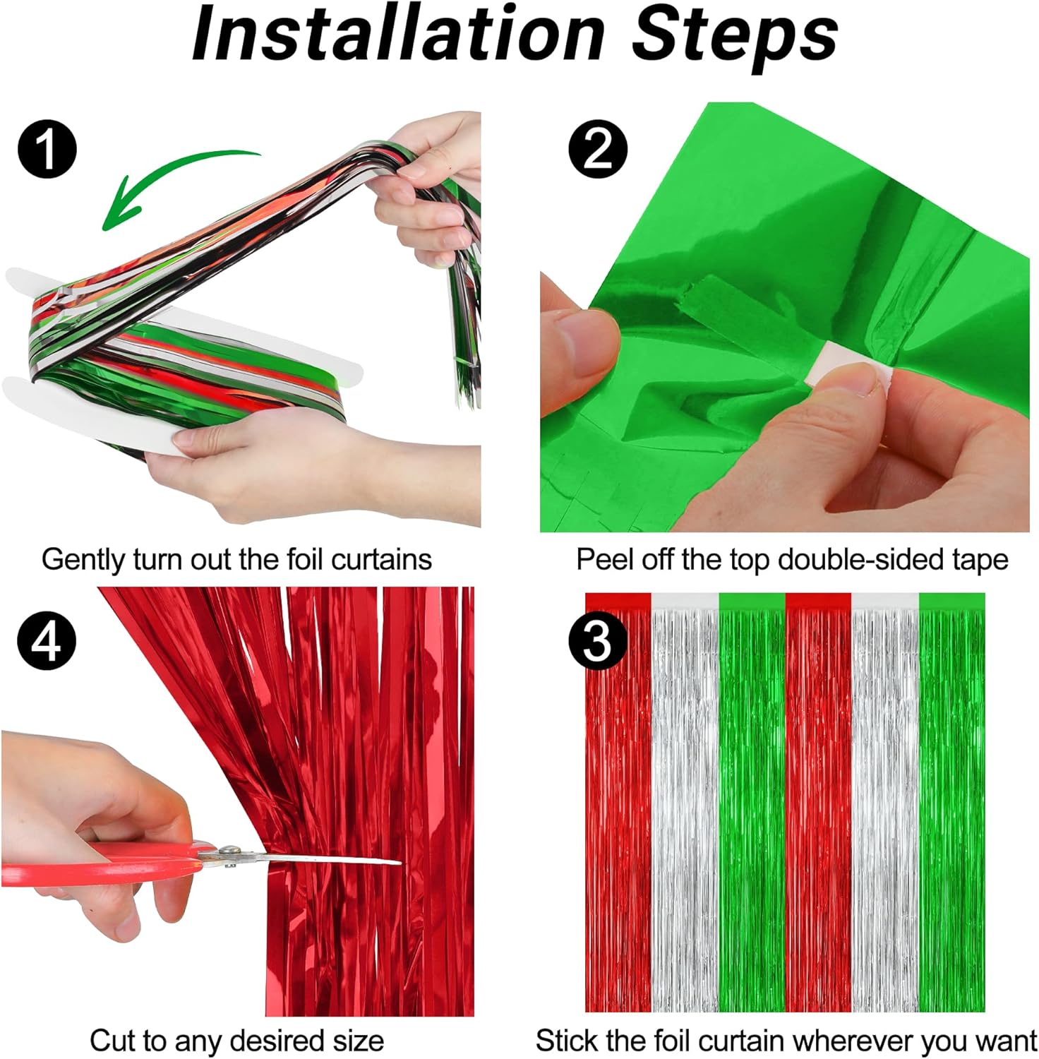 - Package Includes: This product includes 8 pcs red silver green foil streamers, each measuring 3.28 ft x 7.05 ft, the oversized size makes it easy to cut to the right length as needed.