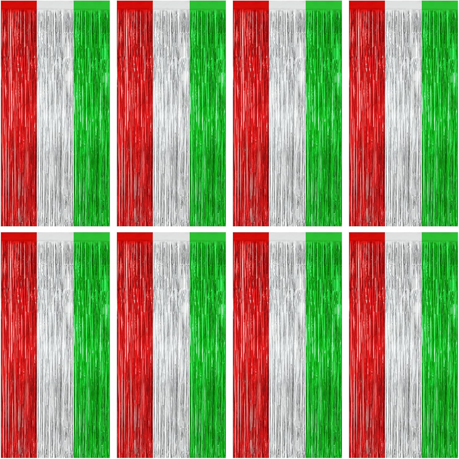 8 Pack Christmas Photo Backdrop, 3.28 FT x 7.05 FT Red Silver Green Party Streamer, Metallic Foil Fringe Curtains Tinsel Backdrop, Christmas Photo Booth Props Door Decor Party Supplies