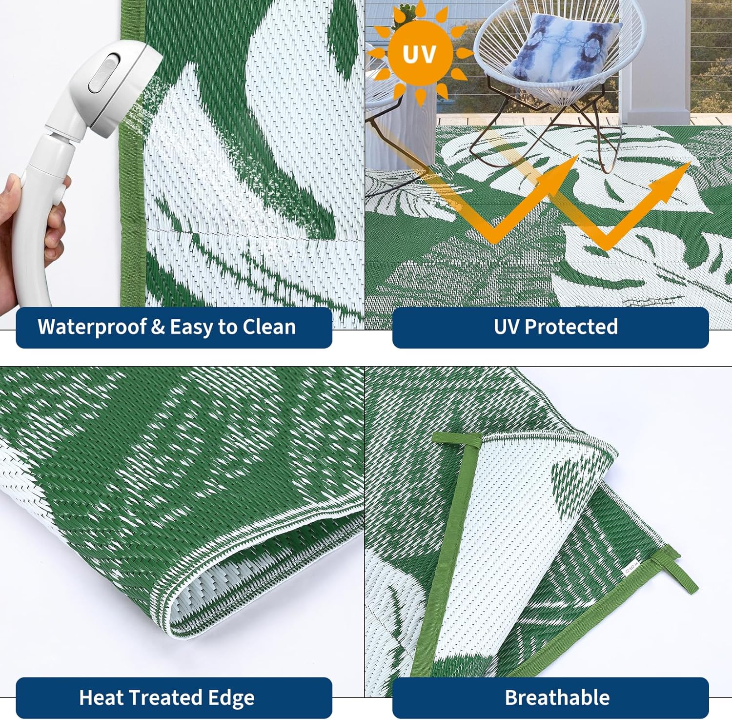- Modern Reversible Design: Refresh any space with this large outdoor rug featuring a tropical leaf pattern. The reversible style gives you two trendy looks in one, making it a versatile outdoor mat for patios, decks, gardens, and front porches