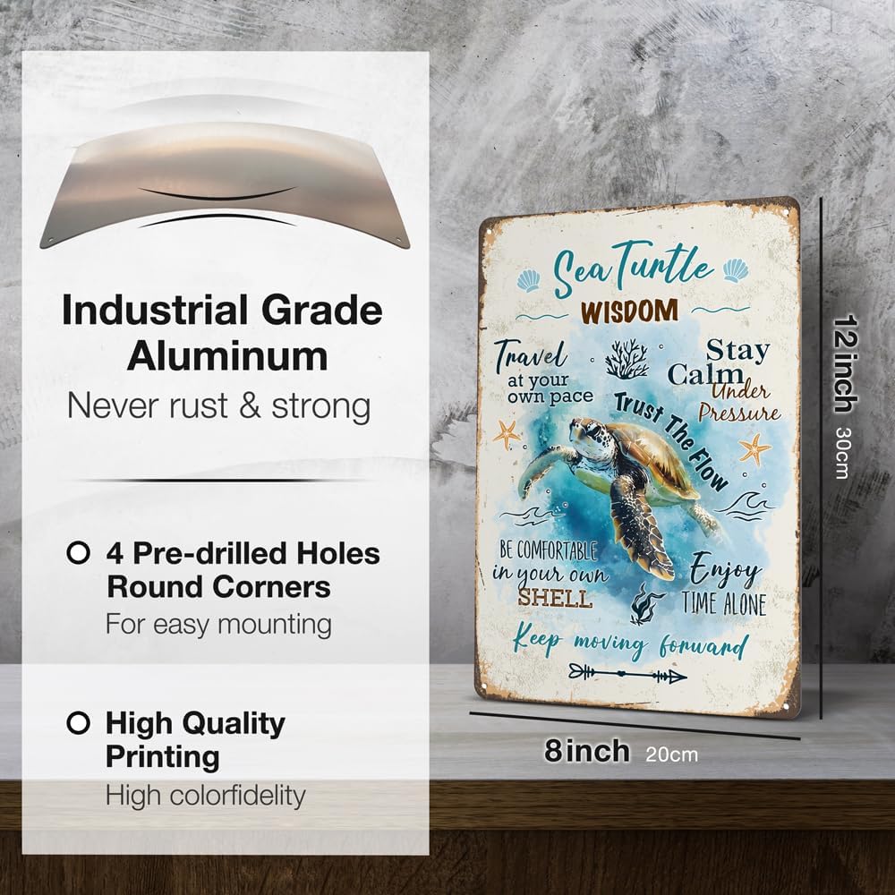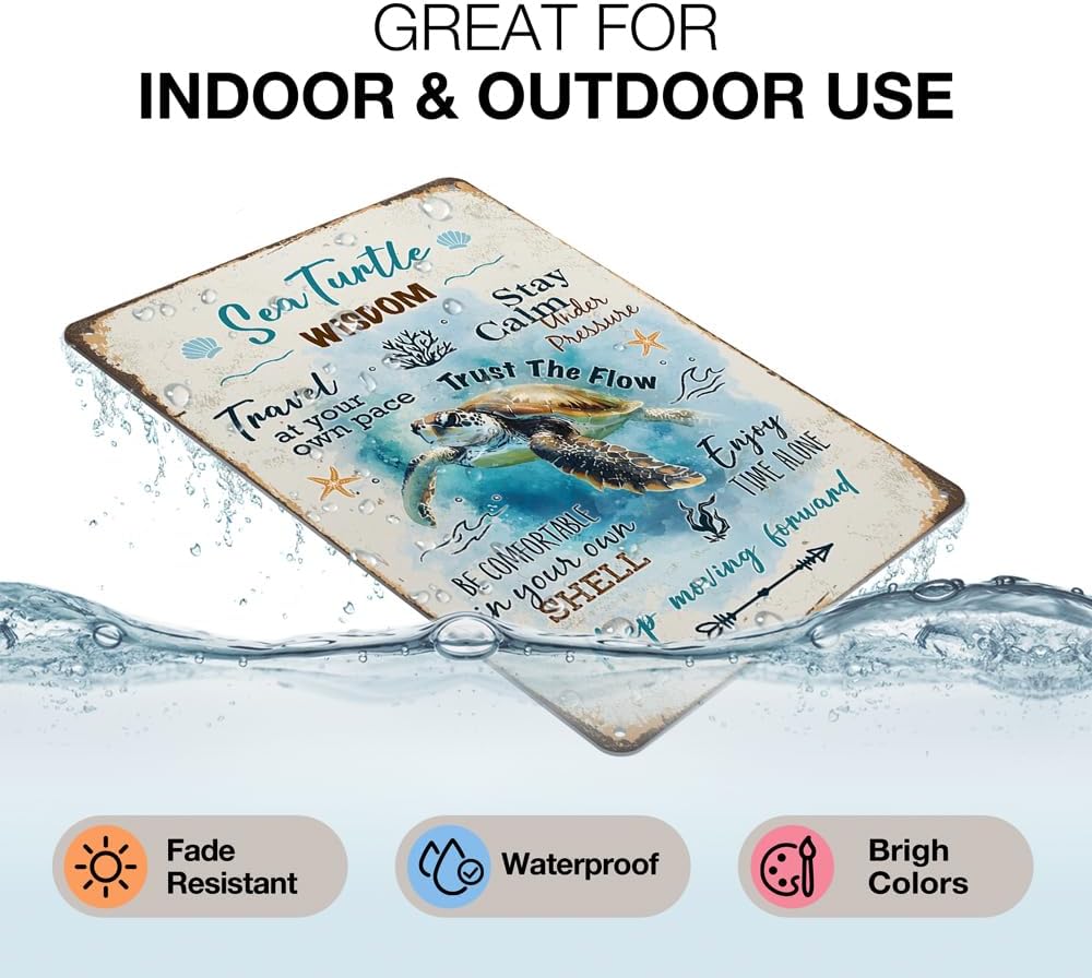 - Inspirational Wall Decor:This vintage sea turtle sign design with positive message,bright colors,will be an eye catcher decorations.Please note that any rust or scratch marks is part of the design and not actual rust
