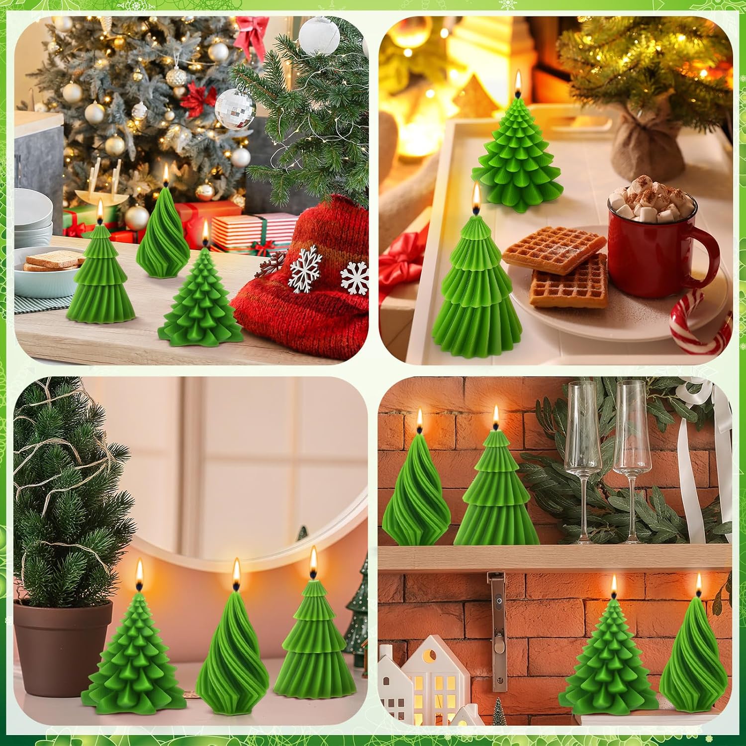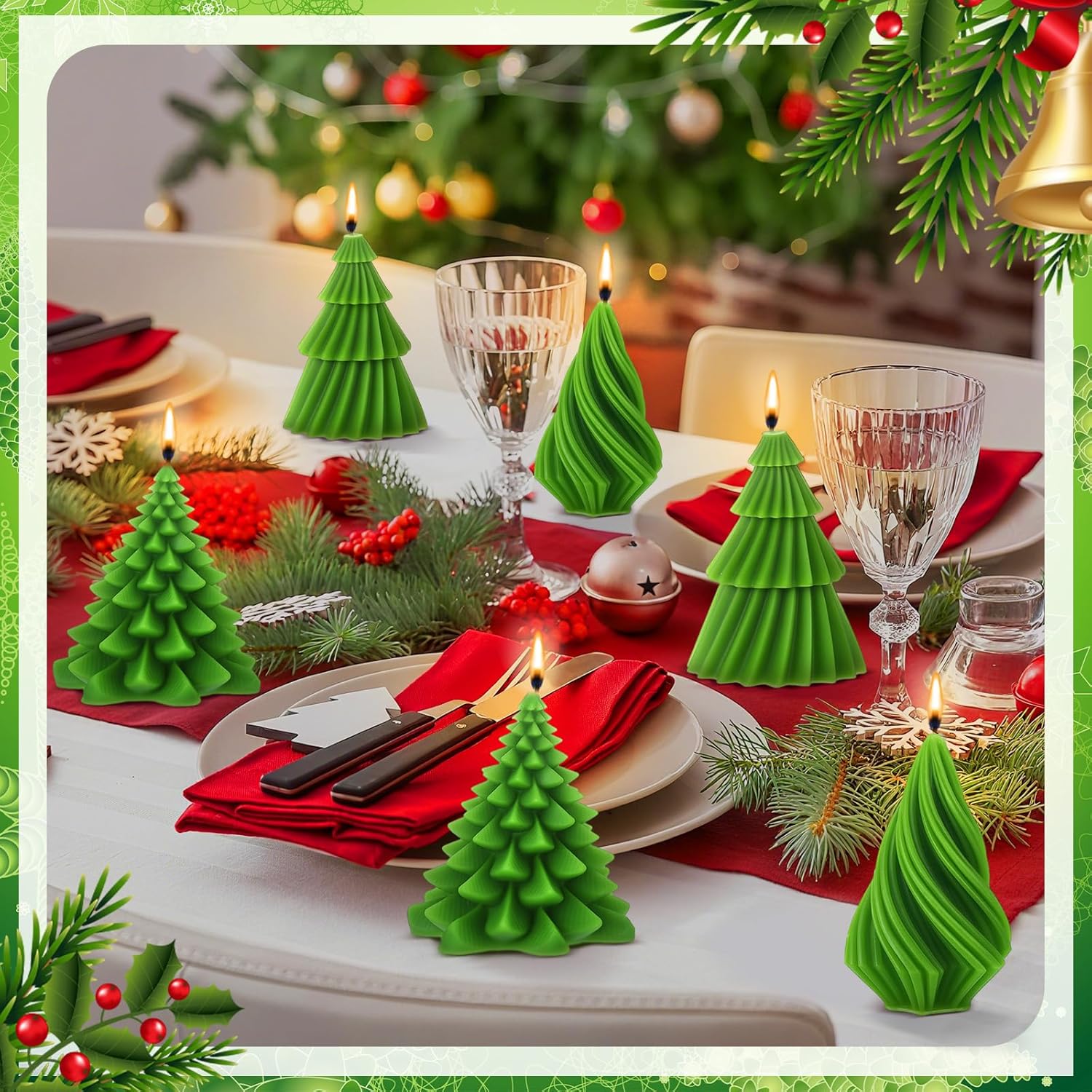 6 Pcs Christmas Tree Shaped Candles Xmas Wax Scented Candles Green Decorative Christmas Tree Gifts for Xmas Eve Winter Holiday Party New Year Bedroom Room Table Decor, 5 Mixed Styles