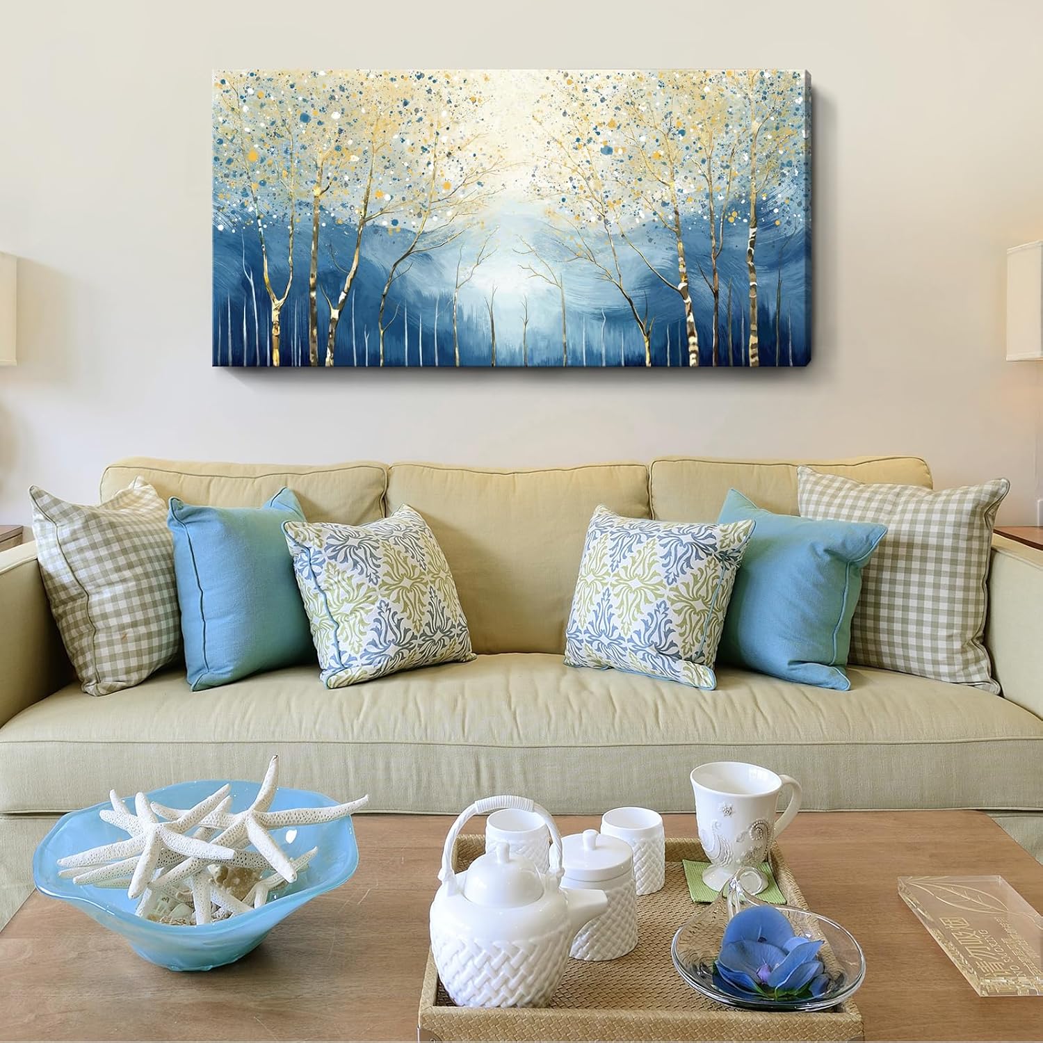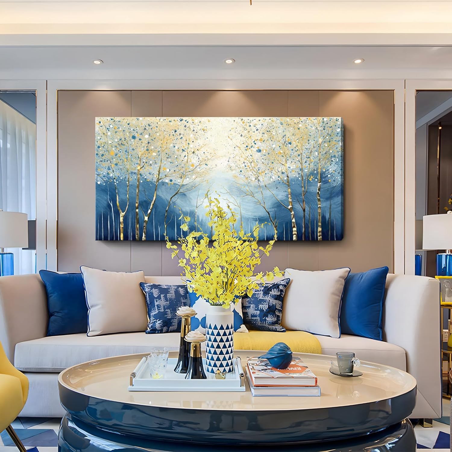 amatop Large Abstract Wall Art for Living Room Modern Tree of Life Canvas Art Print Nature-Inspired Navy Blue Wall Decor Landcape Artwork Birch Forest Picture Bedroom Office Dining Entryway 48x24 Inch