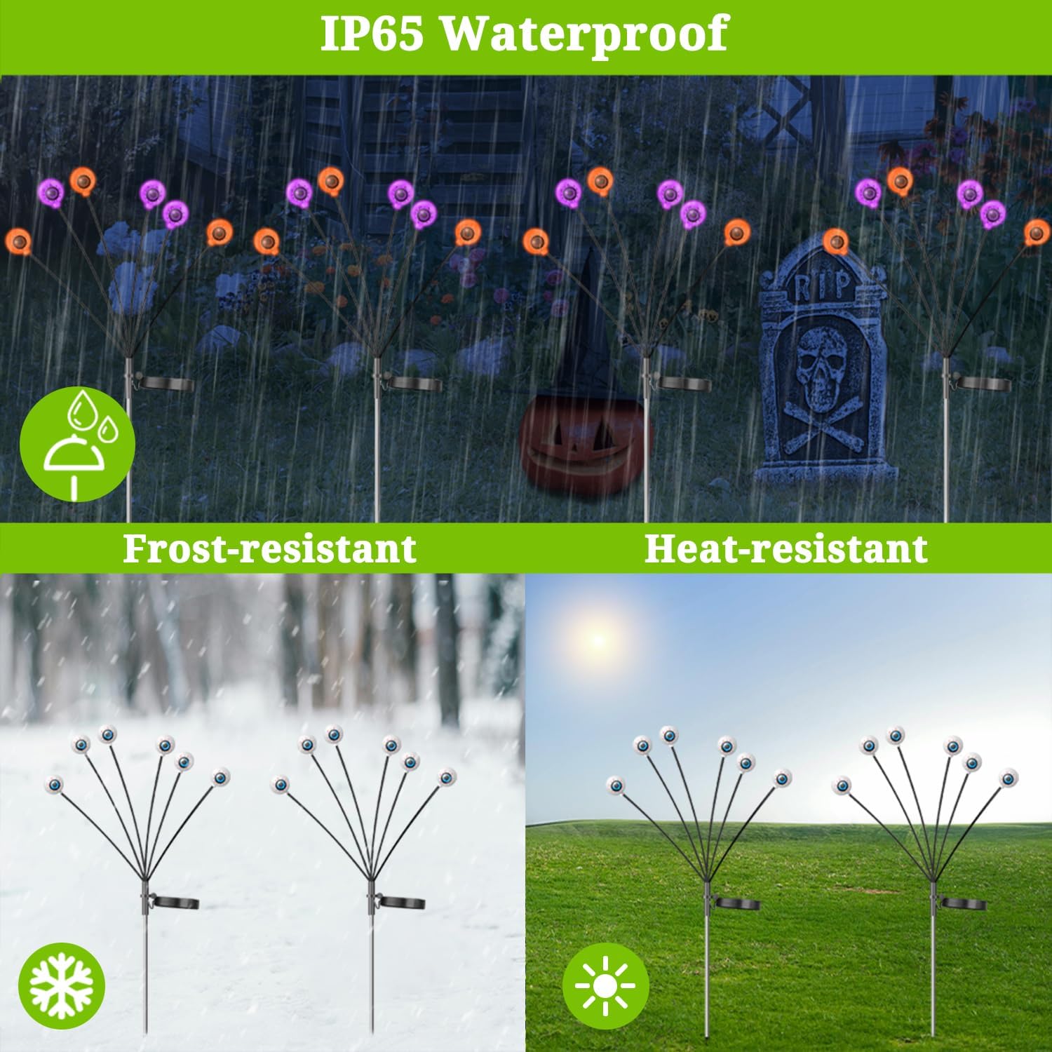- Easy to Assemble οΌ Widely Used: The outdoor solar lights just need insert the eyeball, then connect the rod and ground spike. They can be used in garden, yard , courtyard, path, lawn, terrace, and other places, it's the perfect choice for outdoor halloween decorations.