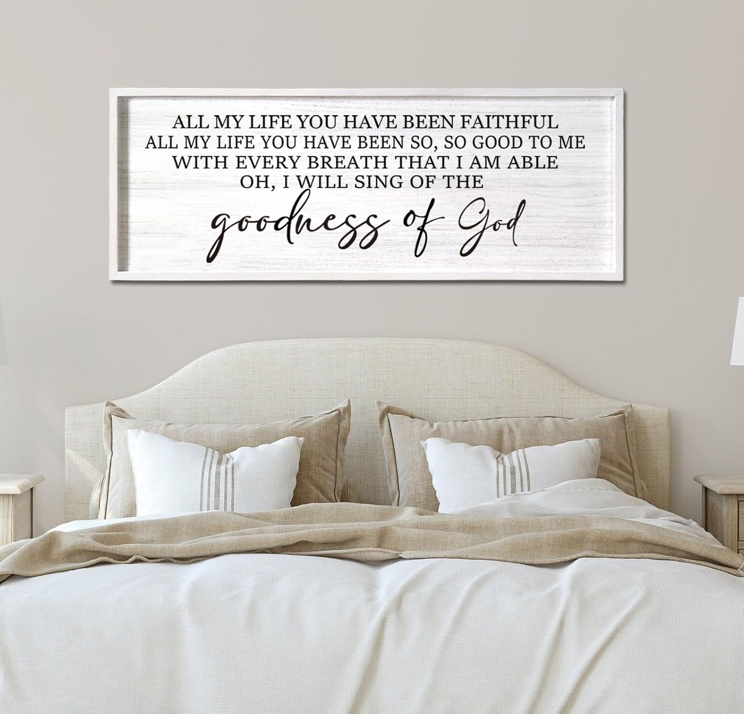 - 【Encouraging Words】Goodness of God large hanging wood sign adopt minimalist letters on the white background, showing constant reminder of faith and devotion in any setting and you passion for god, adding a touch of elegant, and classic beauty to your space and giving people a calming feeling.