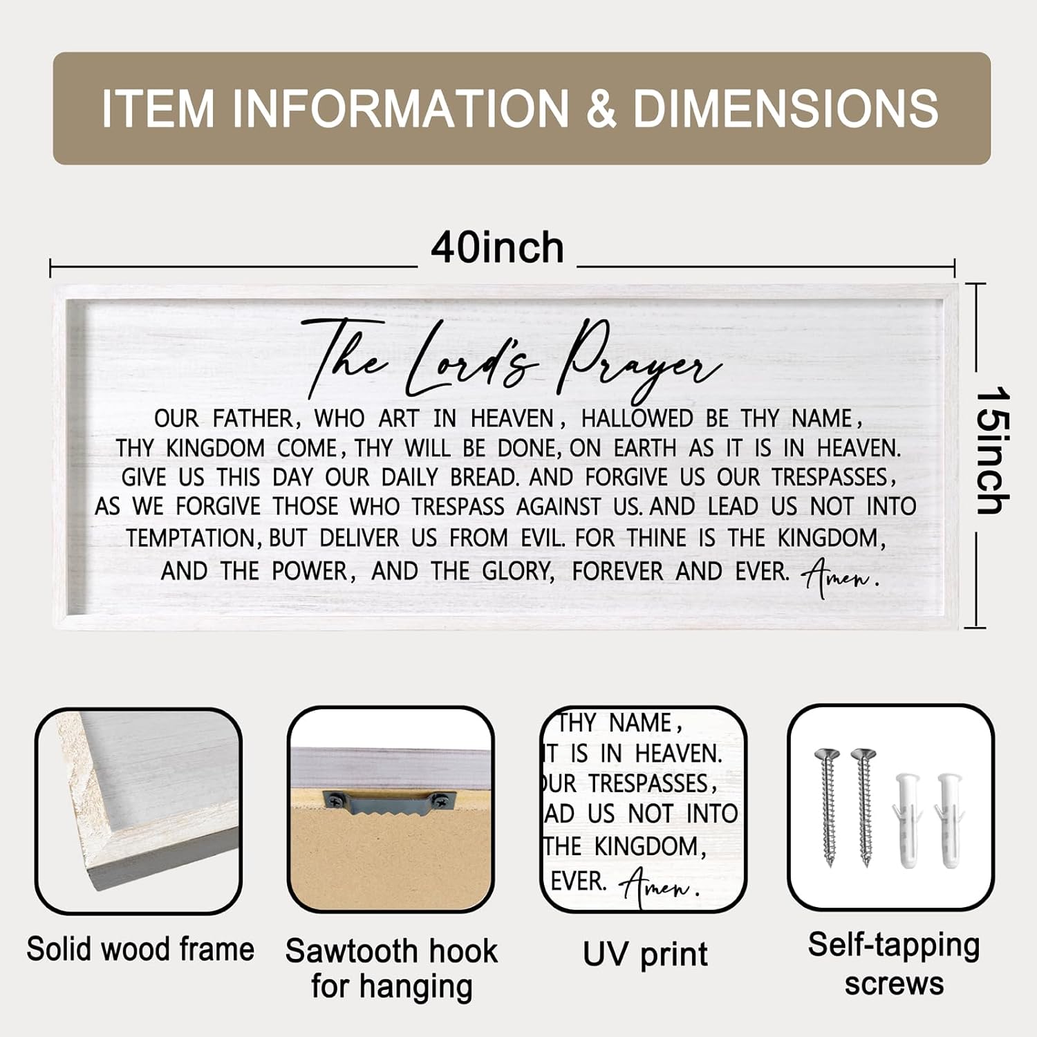 - 【Easy Installation】The inspirational our father prayer wall decor is equipped with plastic expansion and self-tapping screws, which will take you less than ten minutes to install it on the wall.