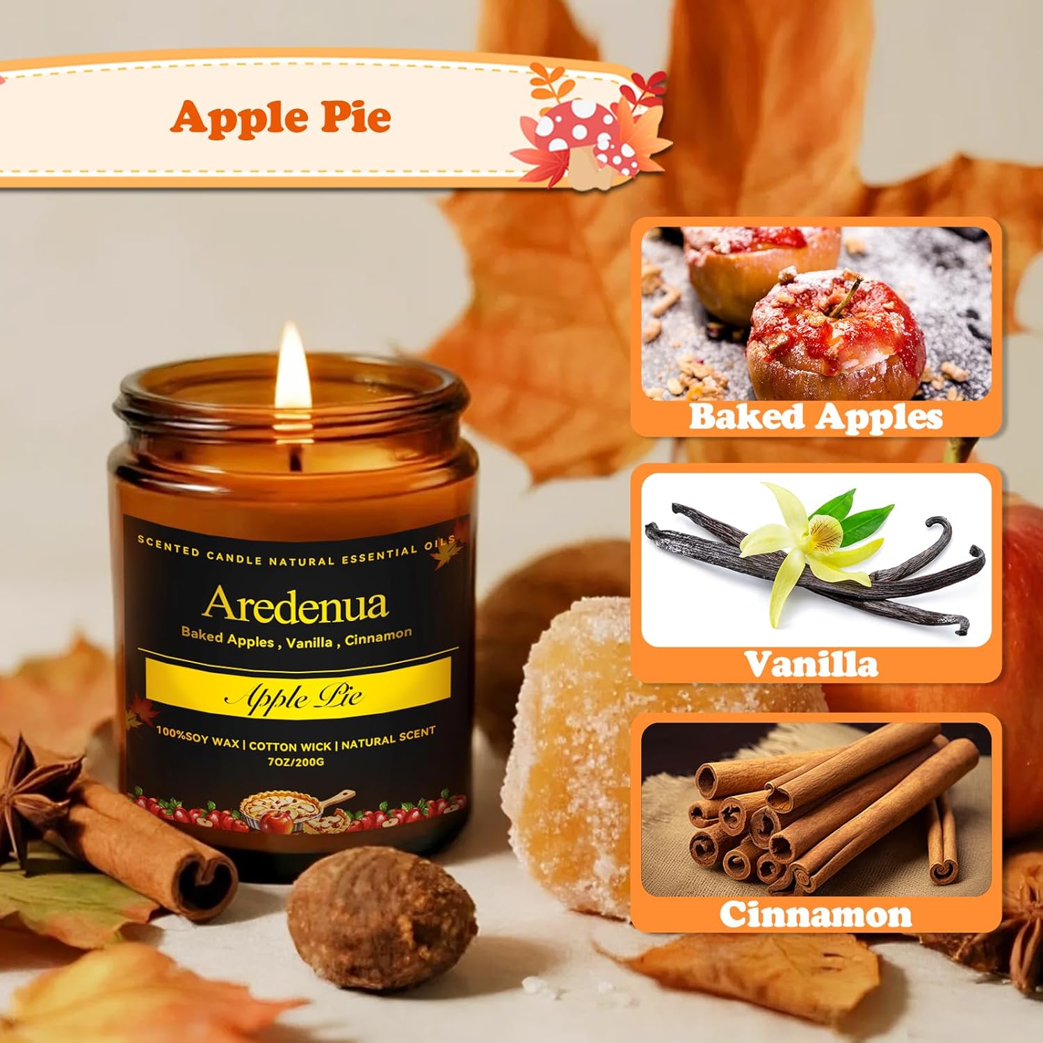 - Perfect for Relaxation 🍎 -- After a long day, lighting an autumn-scented candle can be a simple yet effective way to unwind. The warm, inviting fragrance of apple pie encourages relaxation, making it ideal for bath time, meditation, or simply curling up in your favorite blanket.