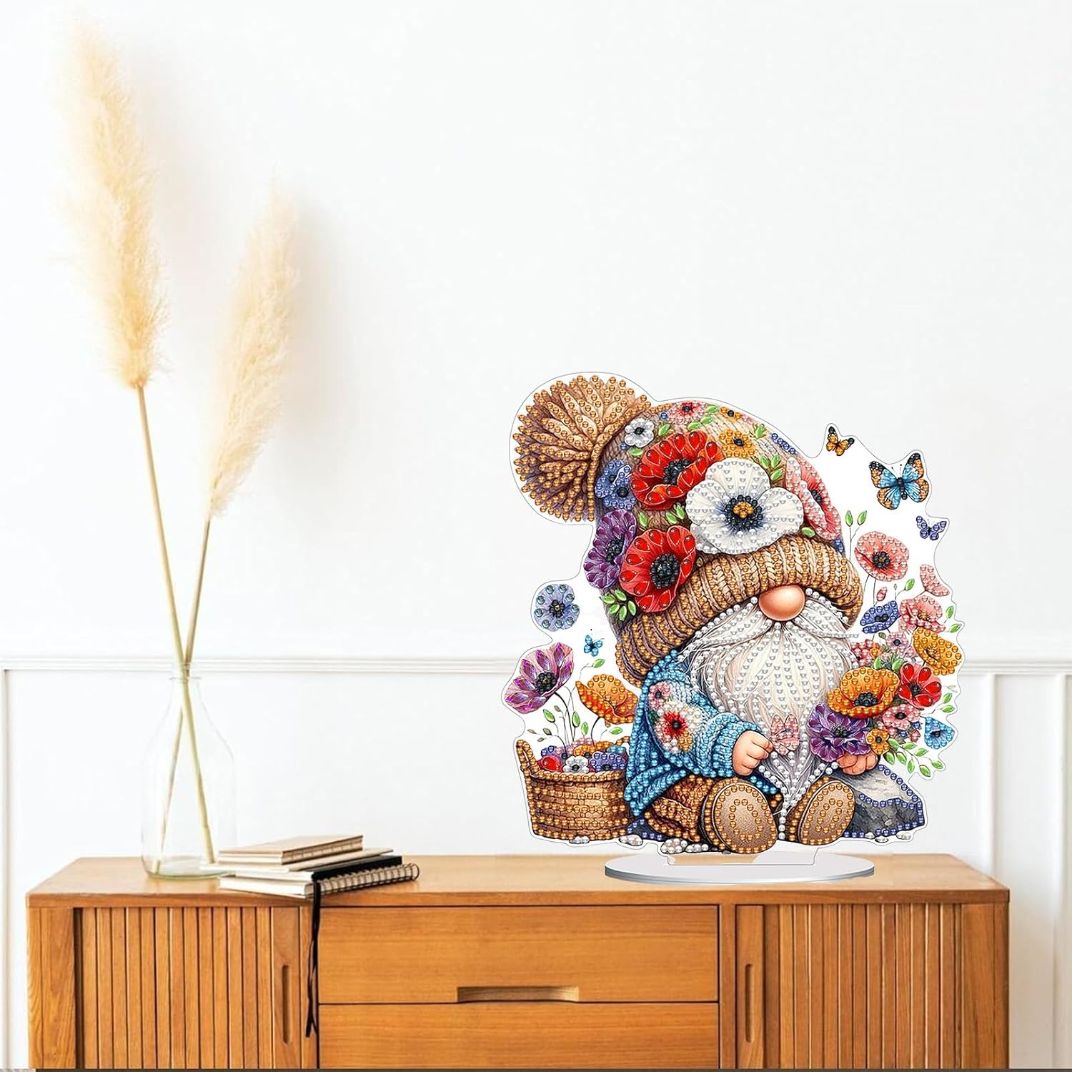- 【Home Decor】:Diamond Art Painting ornament with base design, you can place it in your living room, fireplace, cabinet, shelf and other places you like. The combination of single-sided sparkling diamonds and the beauty of shaped diamonds enhances the visual appeal and uniqueness of the artwork, and the inlaid rhinestones refract the shimmering luster under the light.