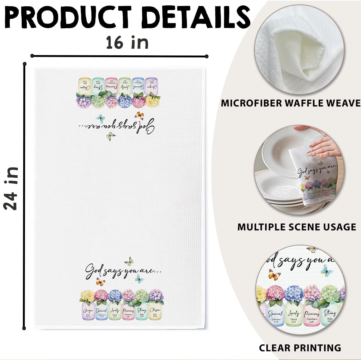 - Inspirational Fabric: Made of waffle weave microfiber and sized at 16x24 inches—soft, absorbent, and ideal for kitchen or bathroom spaces.