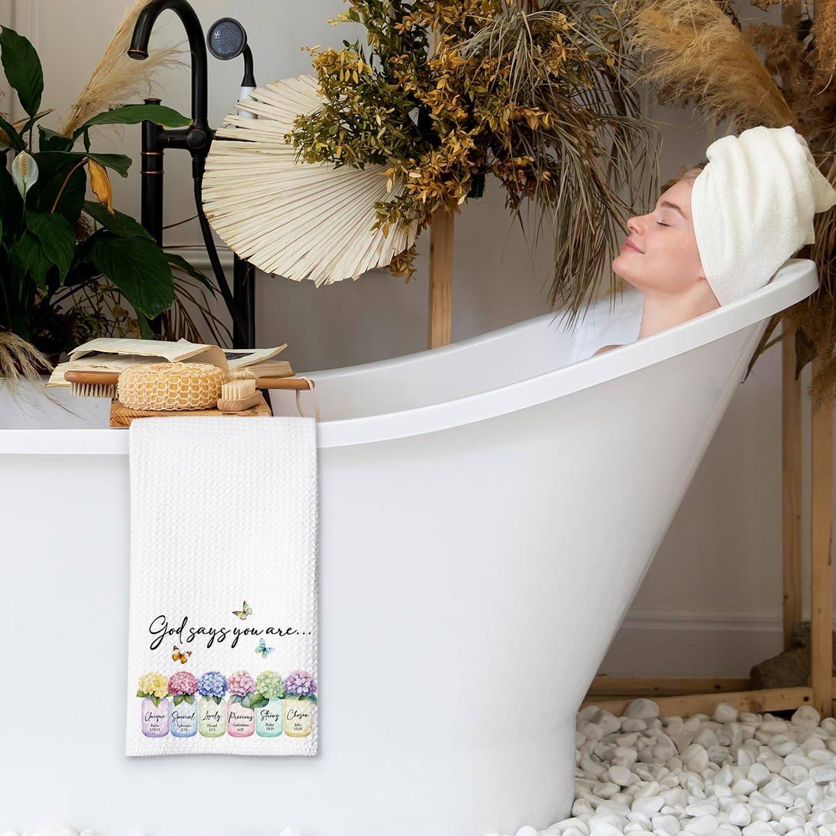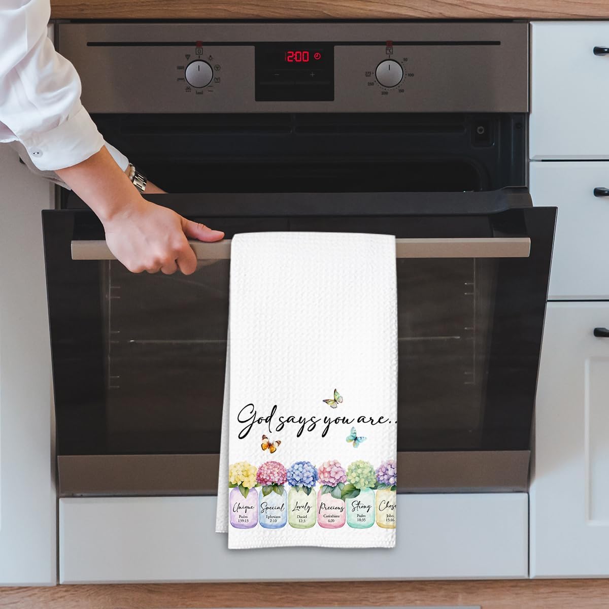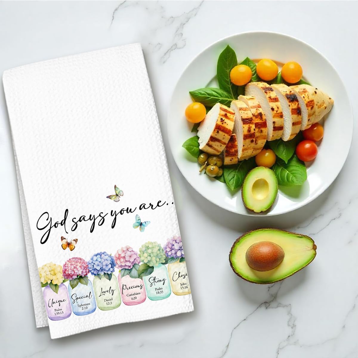 Christian Kitchen Towel, Waffle Weave Microfiber Scripture Hand Towel, God Says You are Bible Verse Farmhouse Decor for Kitchen Bathroom, Inspirational Gift for Women