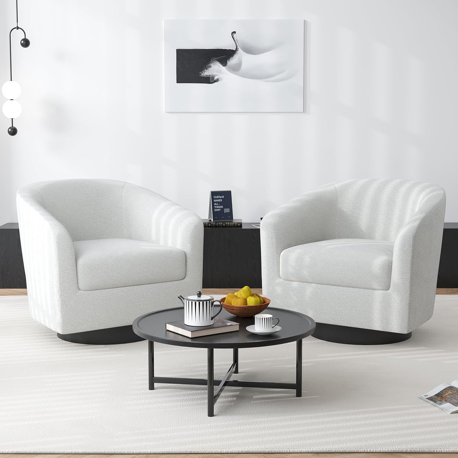 - 360 Degree Swivel Barrel Chair: This 360 degree round swivel chair designed for your leisure comfort. Heavy solid turntable, making it more stable and not wobbly