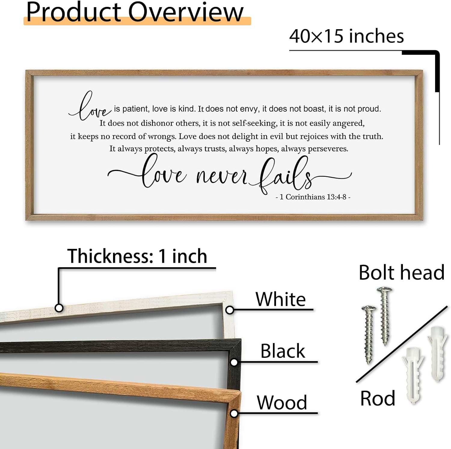 SRSZHIYUE Love is Patient Kind Sign Wall Decor Art 40"×15" 1 Corinthians 13 4-8 Master Bedroom Christian Wood Framed Large Wall Hanging (Wood)