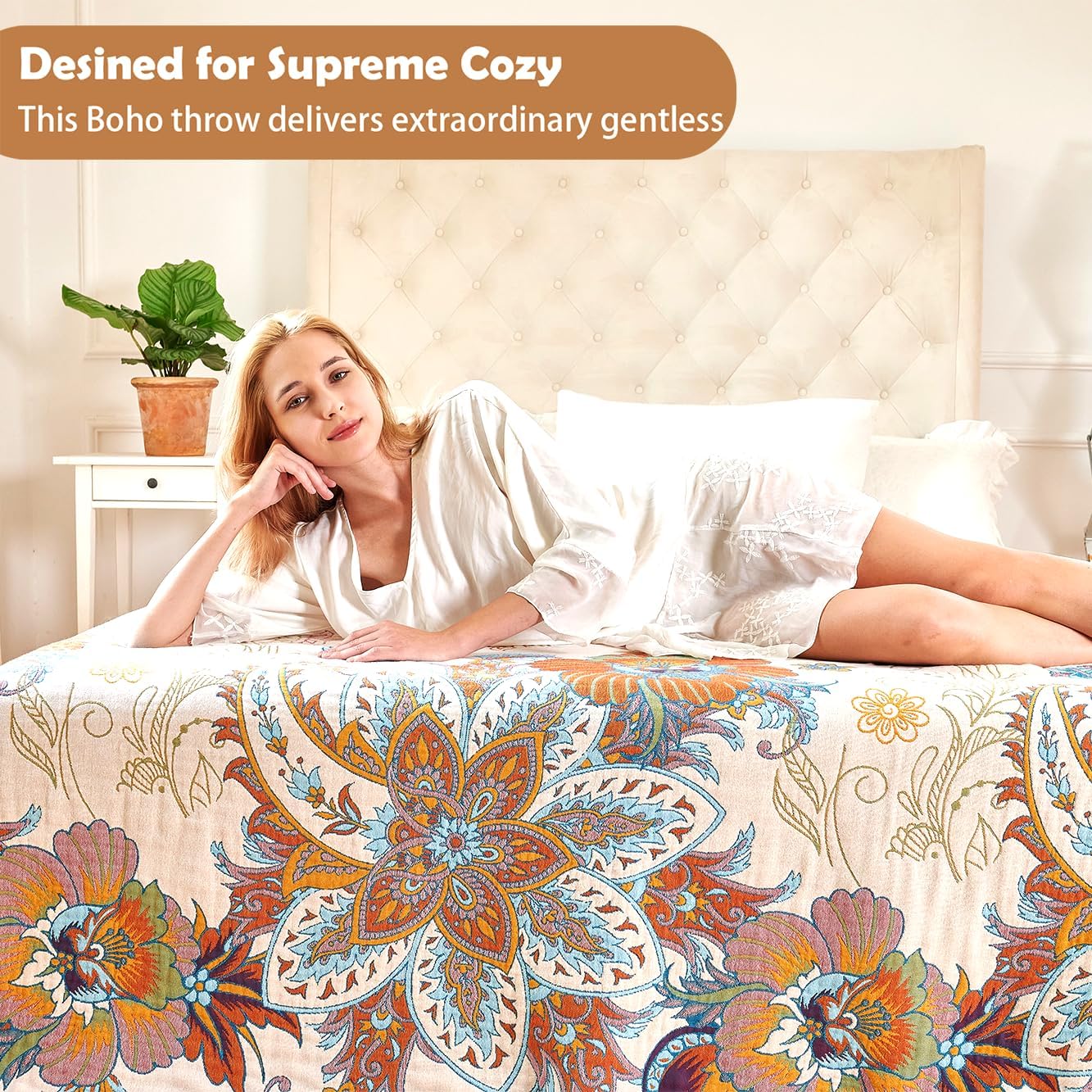 - CERTIFIED SAFE & ECO-FRIENDLY: Authentic eco-friendliness you can trust! Unlike conventional throws,OEKO-TEX certified cotton guarantees safe softness, while GOTS organic & GRS recycled certifications make this boho floral-inspired blanket an ethical home decor choice for eco-conscious families