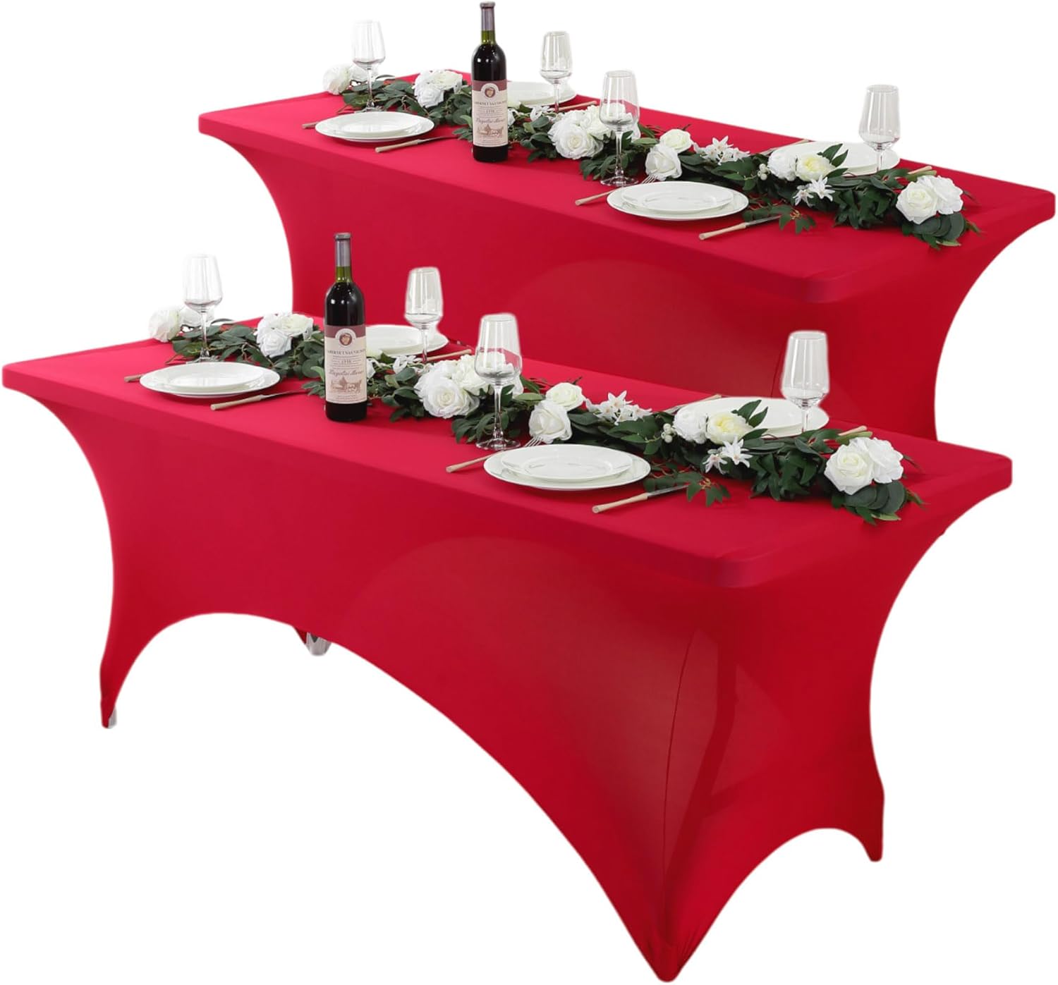 Craft And Party 2 Pack 8ft Red Spandex Tablecloth – Fitted Stretch Cover – Universal Fit for Folding Tables – Wrinkle-Free, Washable – Ideal for Parties, Weddings, Events
