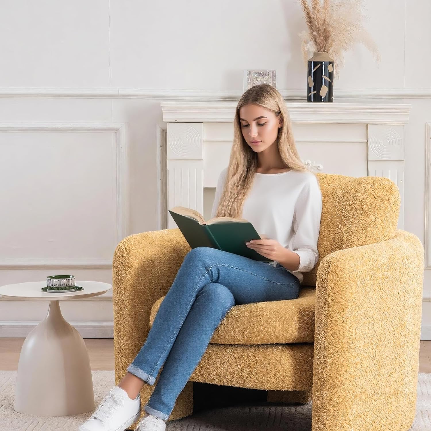 Chenille Accent Armchair Oversize Upholstered Barrel Comfy Modern Round Lounge Sofa Chair with Pillow Cozy Reading Chairs for Apartment,Office,Living Room,Dining,Makeup,Club,Yellow 2SET