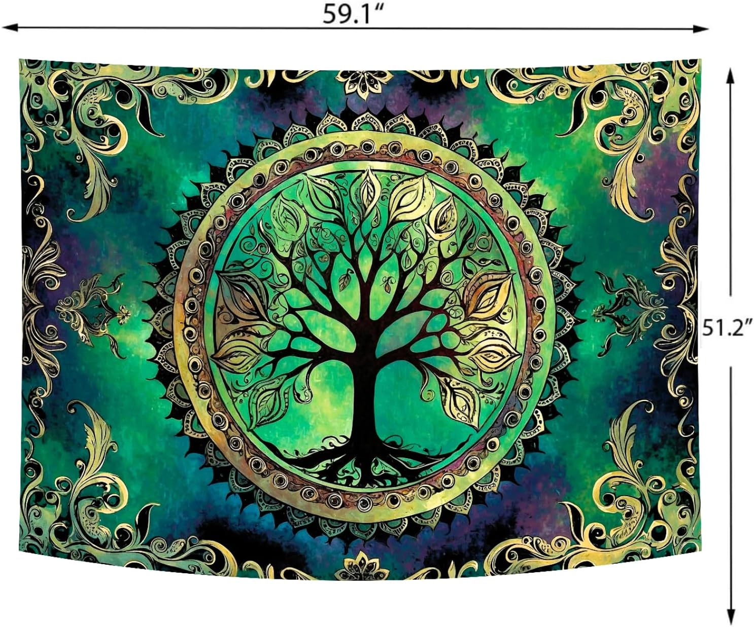 Delur Tree of Life Tapestry Green Nature Bohemian Mandala Spiritual Tapestry Wall Hanging Mystical Landscape Hippie Psychedelic Headboard for Bedroom Living Room Home Decor (51.2" x 59.1")