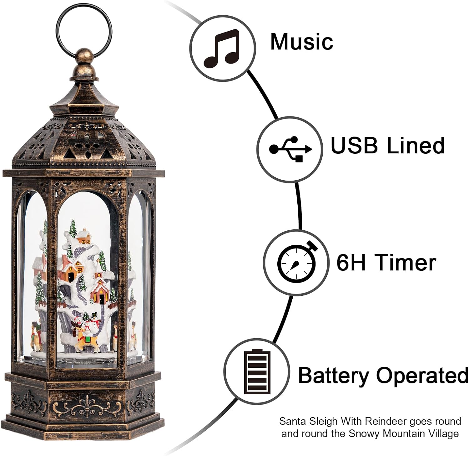 Animated Christmas Village Buildings with Moving Figurines Lighted Water Lantern, USB Lined/Battery Operated Snow Globe for Christmas Festival Decoration Gifts