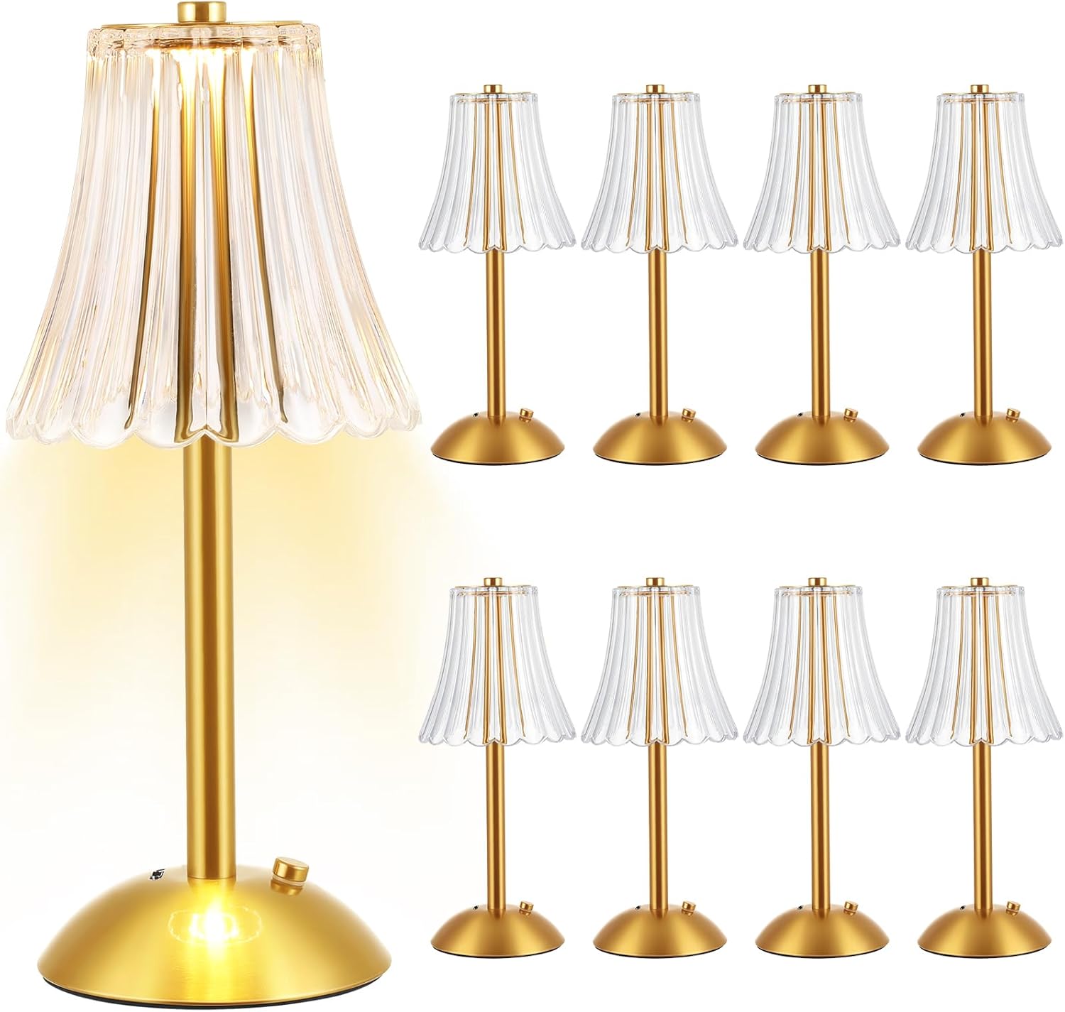 Liliful 8 Pcs LED Portable Cordless Table Lamp Touch Battery Operated Rechargeable Desk Lamp 3 Color Dimmable for Bedroom Living Room Dining (Rose Style,Gold)