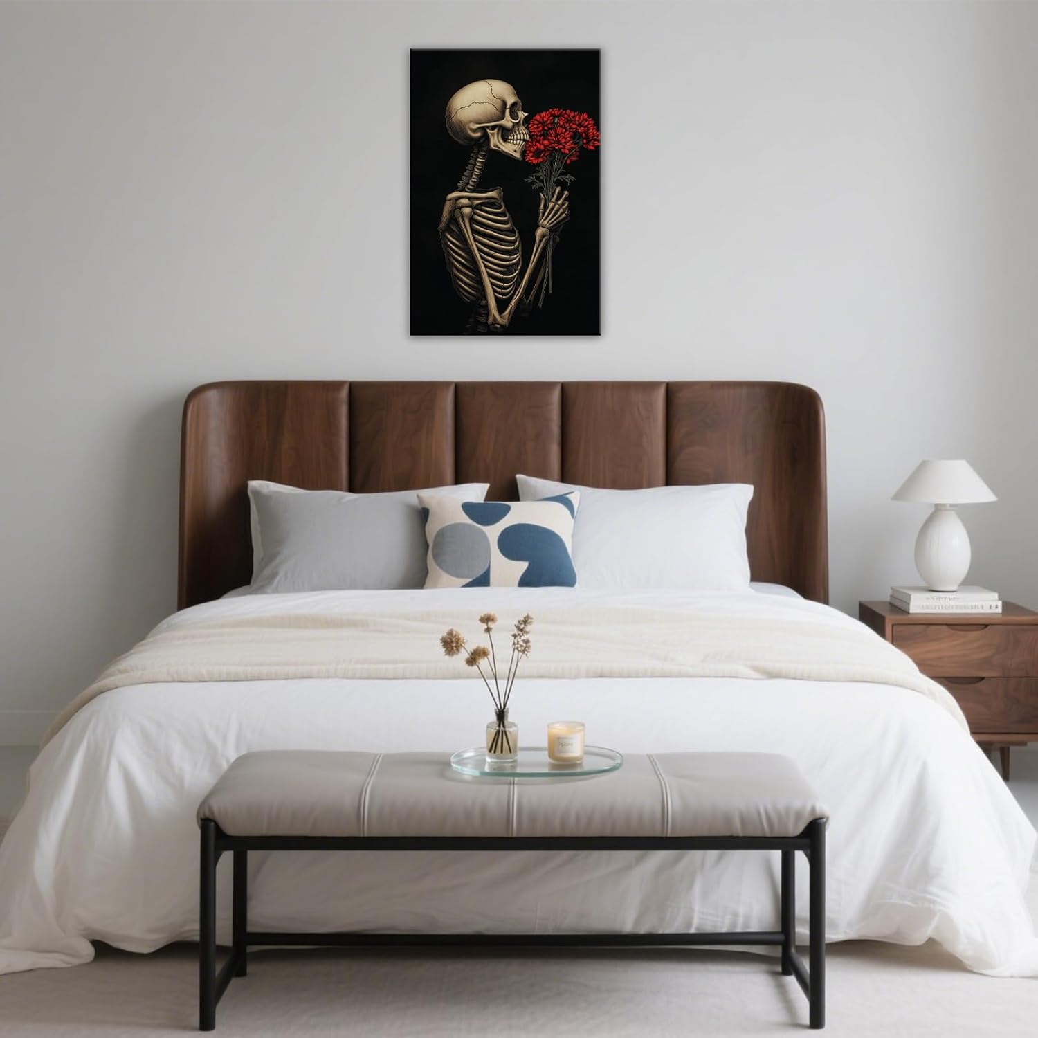 OAAPITI Red Rose Skull Wall Art Dark Themed Skeleton Painting Modern Artwork for Gothic Home Decor(Artwork-5,28"x42")