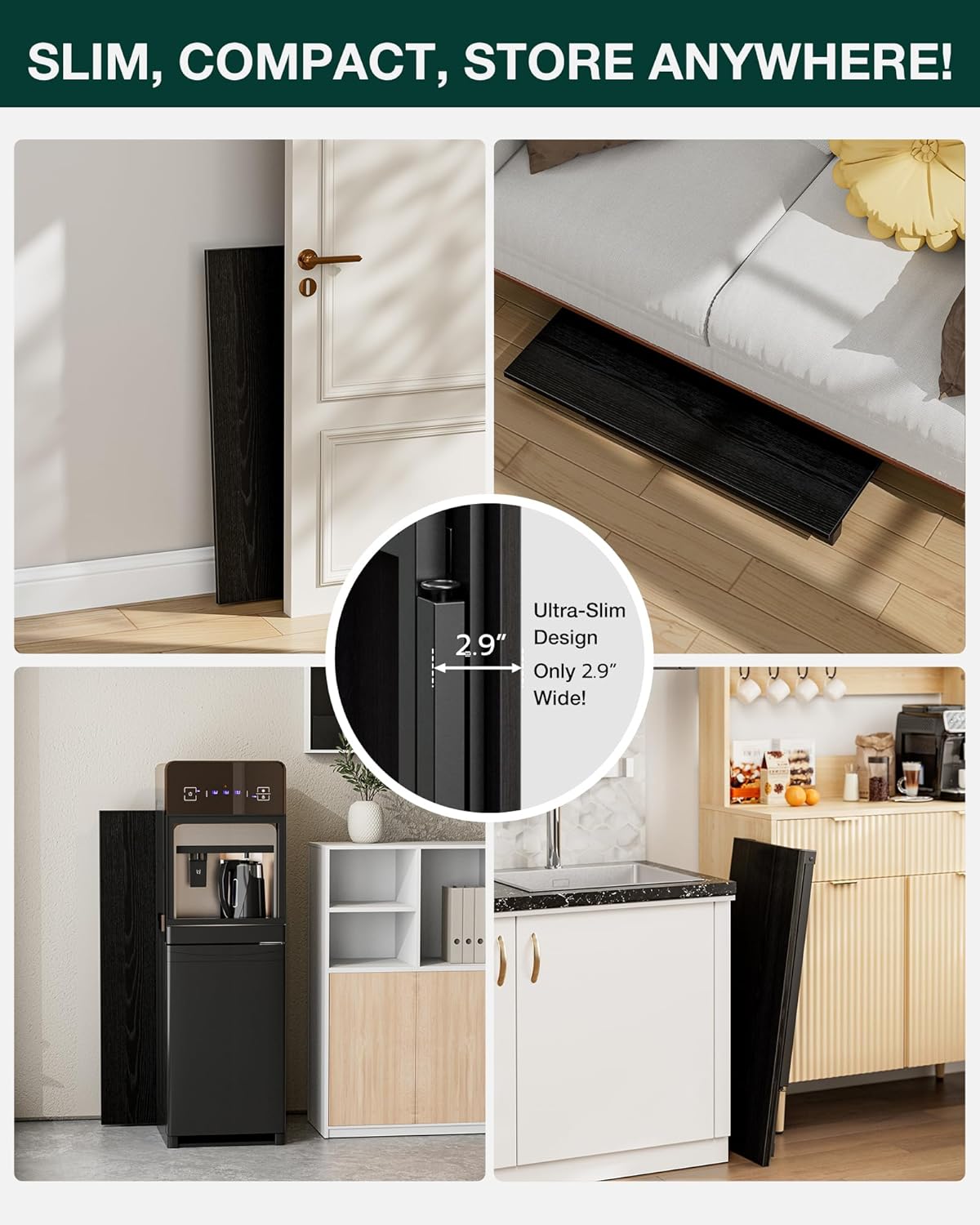 - 👍𝗙𝗢𝗟𝗗𝗦 𝗙𝗟𝗔𝗧 𝗪𝗜𝗧𝗛 𝗦𝗣𝗔𝗖𝗘-𝗦𝗔𝗩𝗜𝗡𝗚 𝗦𝗧𝗢𝗥𝗔𝗚𝗘 — With a folded thickness of only 2.9 inches, this desk fits easily under beds or behind doors. Lightweight and compact, it’s perfect for small-space living or temporary setups like trade shows and pop-up workstations