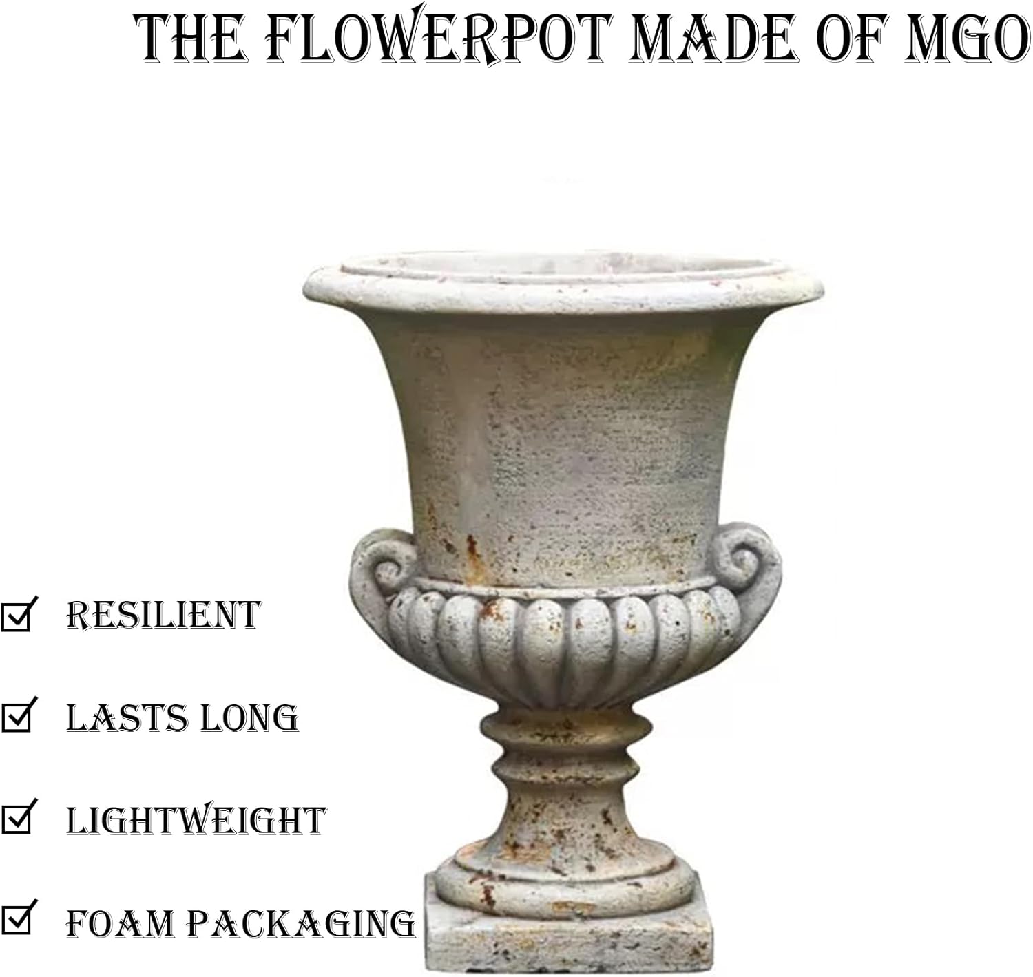Vintage European Garden Urn Planter, Decorative Cement and Fiber Flower Pot, Make Antiqued Finished, H=19.7in, Wrap Foam Safely Delivered from Local Warehouse (Antiqued, Medium)
