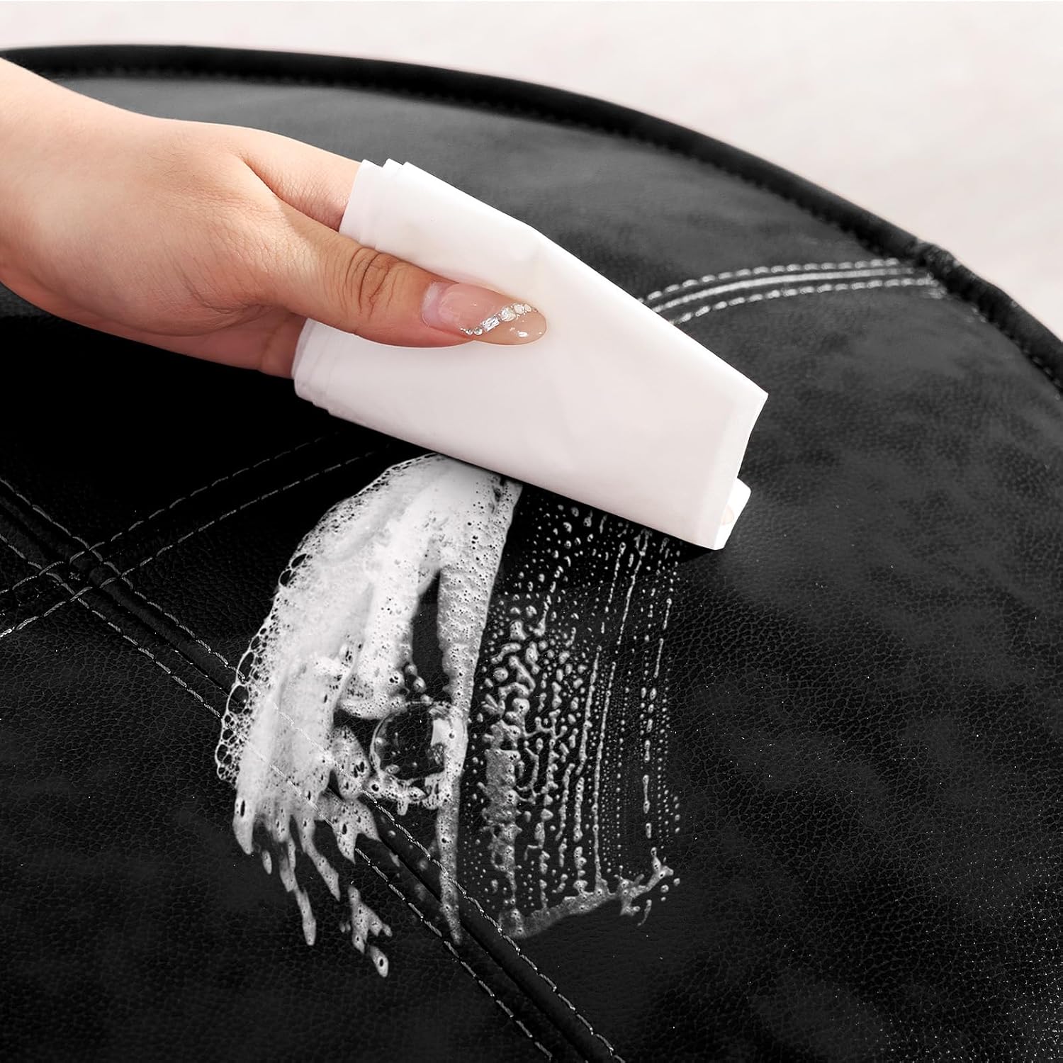 Round Leather Ottoman,Handmade Stuffed Ottoman,Genuine Leather Pouf, Foot Rest Pouf,Comfortable Soft Seating for Living Room & Bedroom (Black, Round)