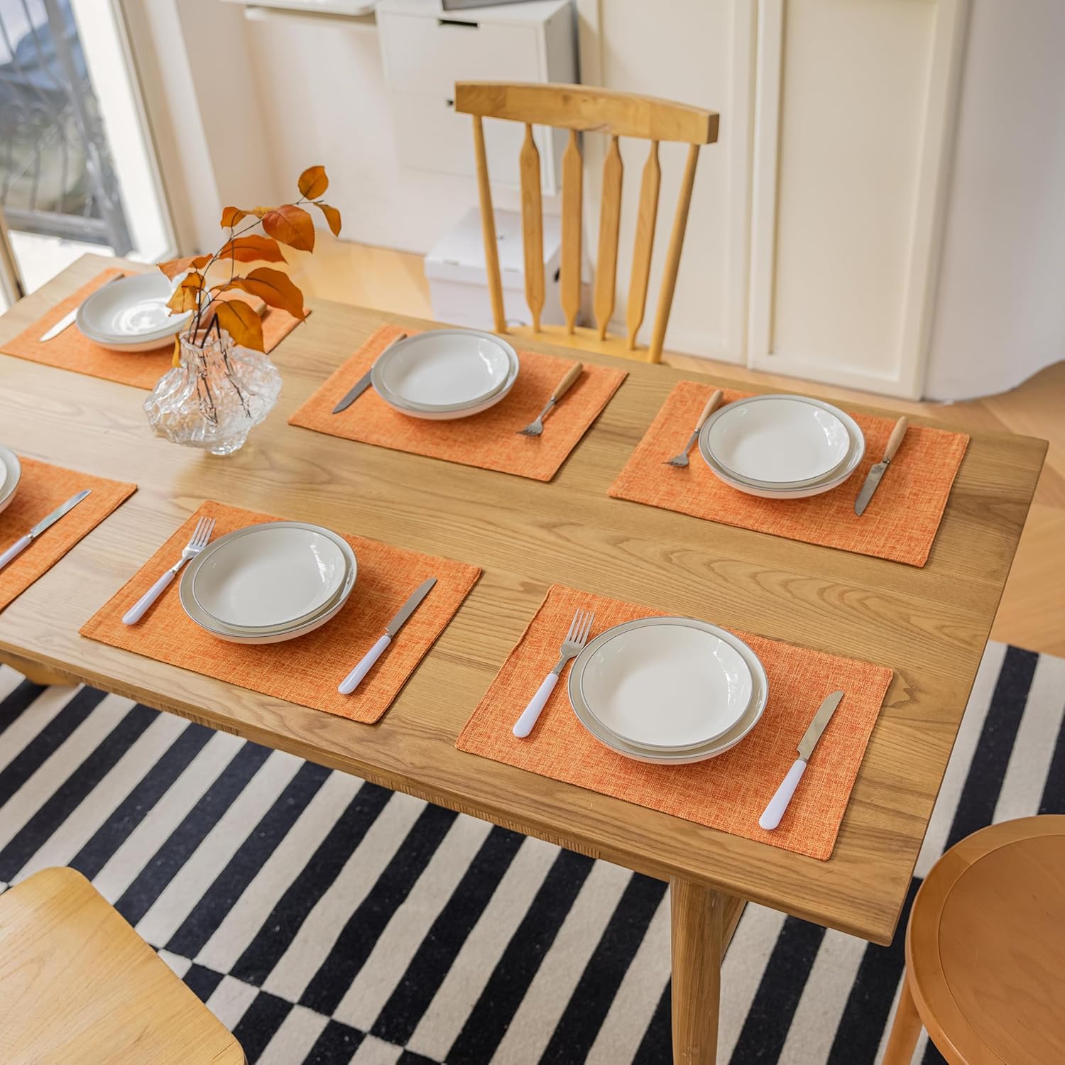 Demetex Orange Placemats Set of 4 Fall Linen Place Mats Decorative Heat Resistant Cloth Table Mats for Party Birthday Thanksgiving Dinner, 13x19 inch, Orange