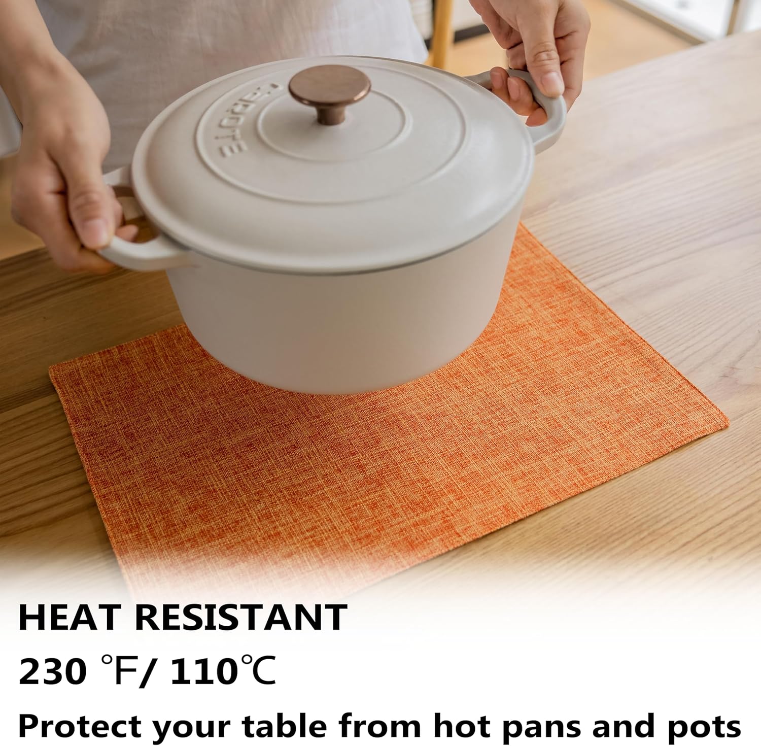 Demetex Orange Placemats Set of 6 Fall Linen Place Mats Modern Washable Table Plate Mats for Banquet Buffet Restaurant Dining Room, 13x19 inch, Orange