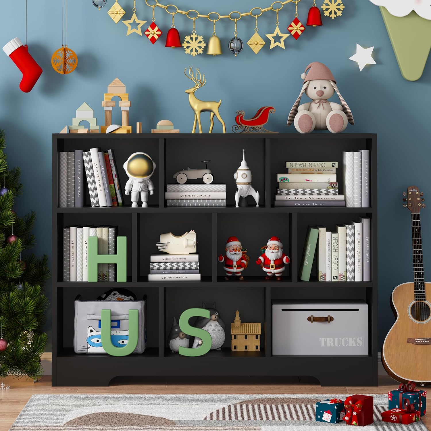 Book Shelf, 10 Cubes Storage Organizer, Freestanding Black Bookshelf Cube Shelf for Bedroom, Living Room, 3-Tier Open Bookshelf Wooden Bookcase