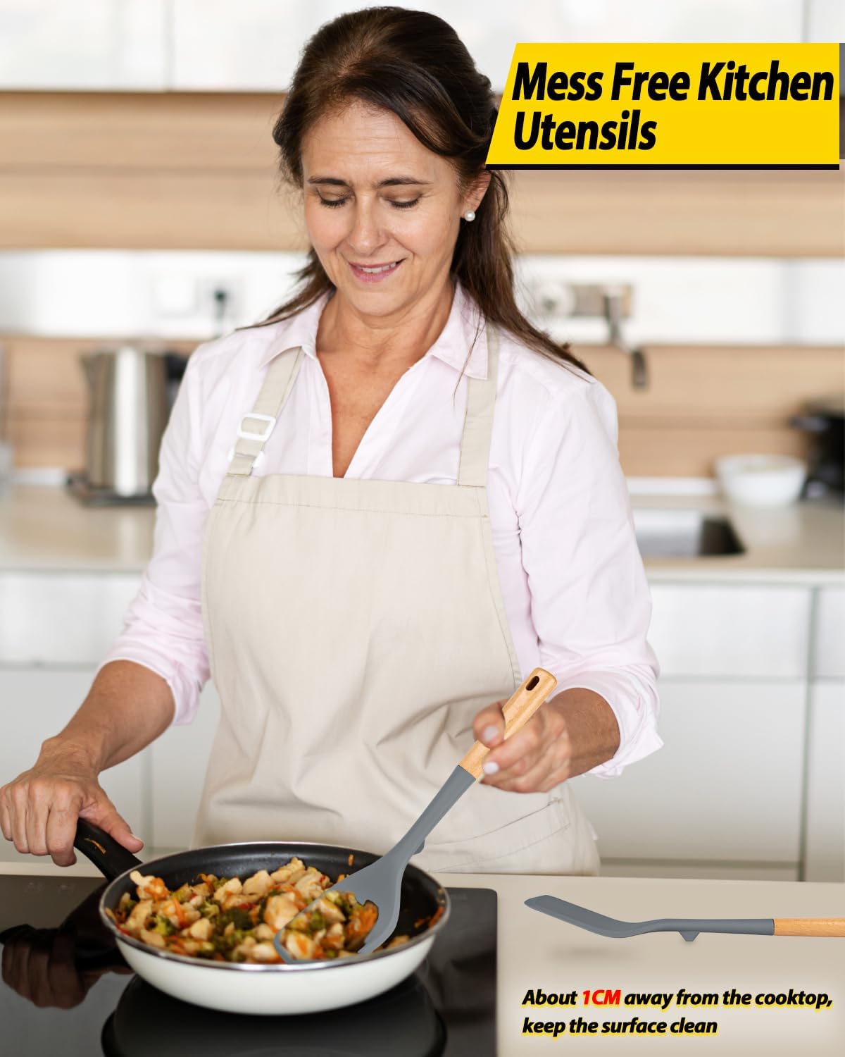- Thoughtful Design: The little bulge design prevents the silicone head from touching the cooktop after cooking, effectively keeping the surface clean;Wooden handle keeps you away from the trouble of kitchen utensils rusting or breaking