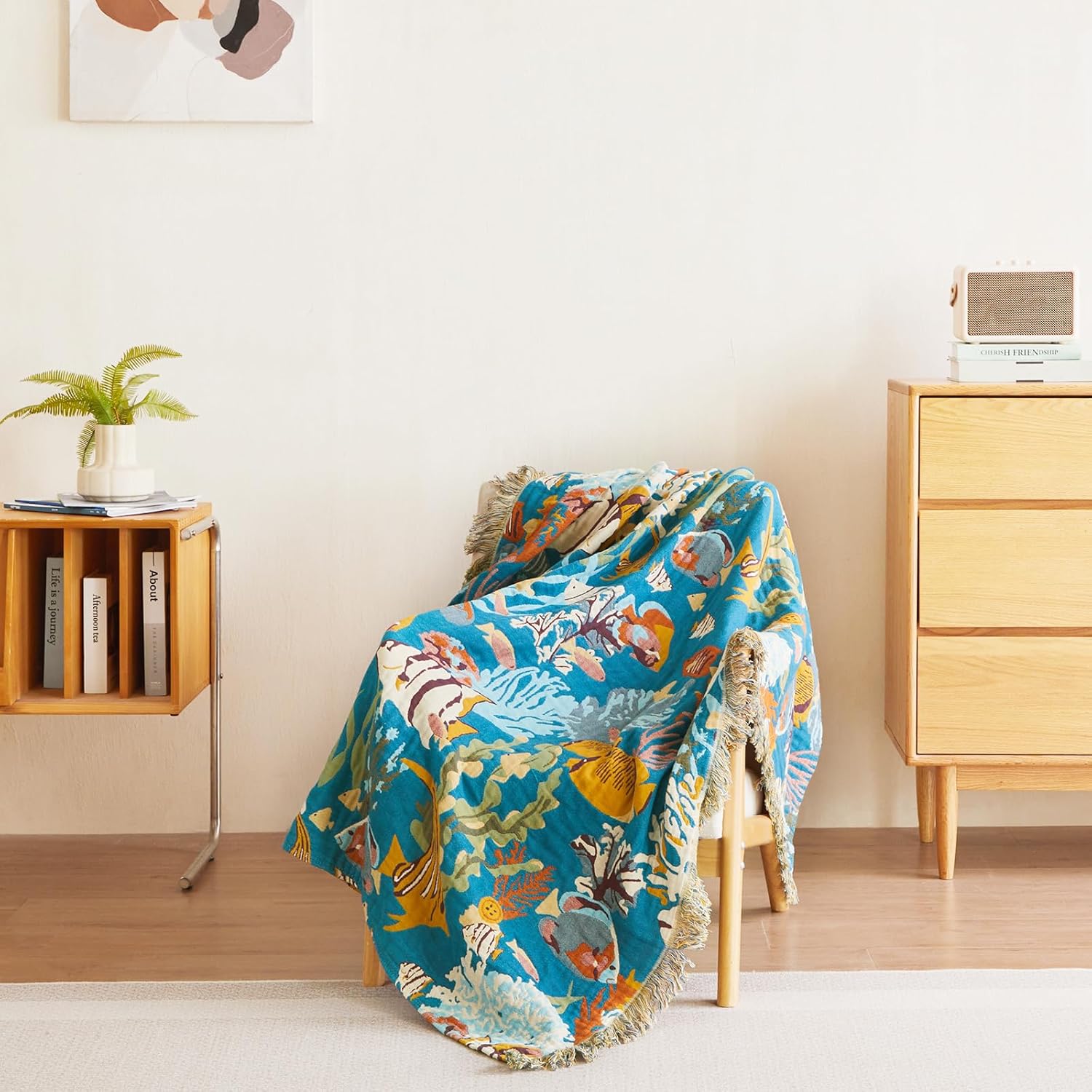 MSGKV Throw Blanket for Couch Cotton Muslin Breathable Cute Ocean Animals Blanket 50"x60" Sofa Chair Blankets for All Seasons Lightweight Farmhouse Blankets Home Decor