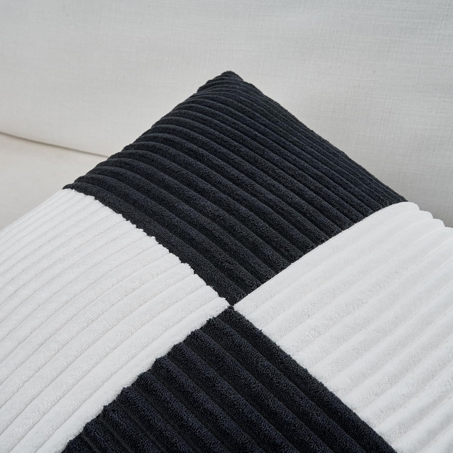 Fancy Homi Set of 2 Black White Euro Decorative Throw Pillow Covers 28x28 Inch for Bedroom Couch Bed, Farmhouse Boho Home Decor, Soft Cross Corduroy Patchwork Textured Square Cushion Case 71x71 cm