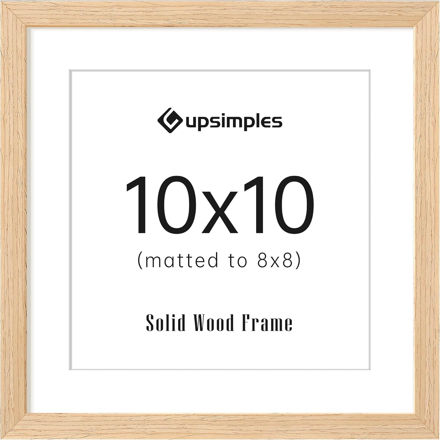 upsimples 10x10 Frame, Natural Solid Wooden Picture Frames, Display 8x8 with Mat or 10 x 10 Without Mat, Wall or Tabletop, 1 Pack, Natural