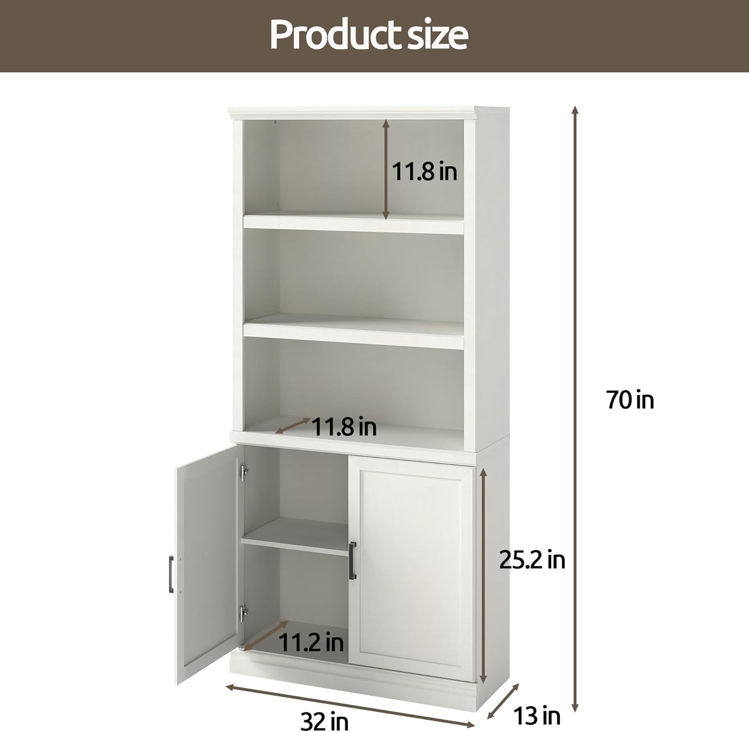 - Versatile Home Designโ: This attractive and practical bookcase with doors features three open upper shelves with two adjustable boards, making it easy to display decorative items, books, figurines, etc., keeping your favorite things in plain sight. The bottom cabinet with double doors includes one adjustable shelf, allowing you to divide the storage space as needed, hide infrequently used items, prevent dust, and keep your home tidy.โ