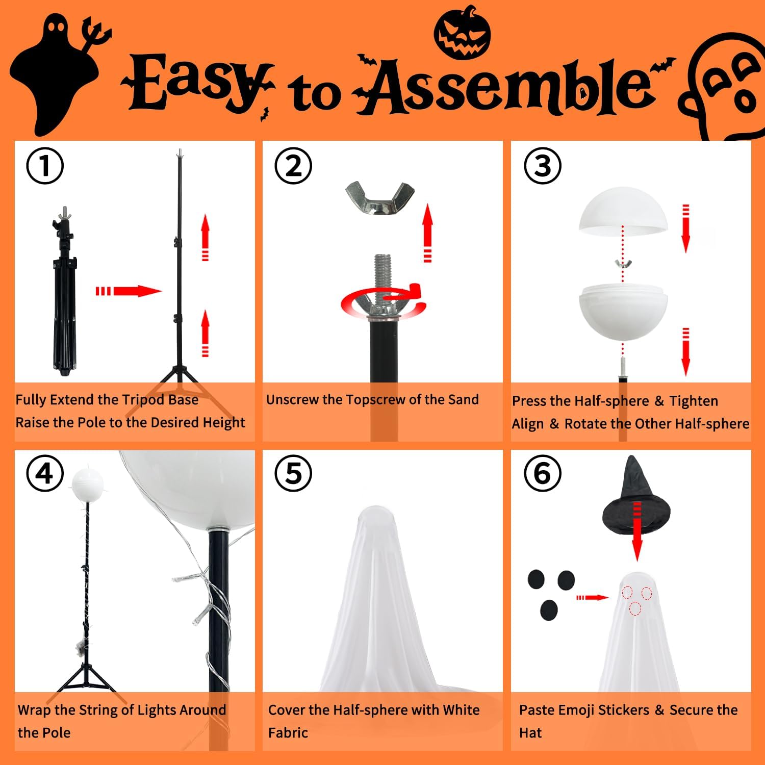 - 👻2025 Upgrade Materials: Adpot high quality sturdy materials, including a hemispherical head, base, and support rod, ensuring better stability. It is also easy to disassemble and store after use for next year's Halloween use.