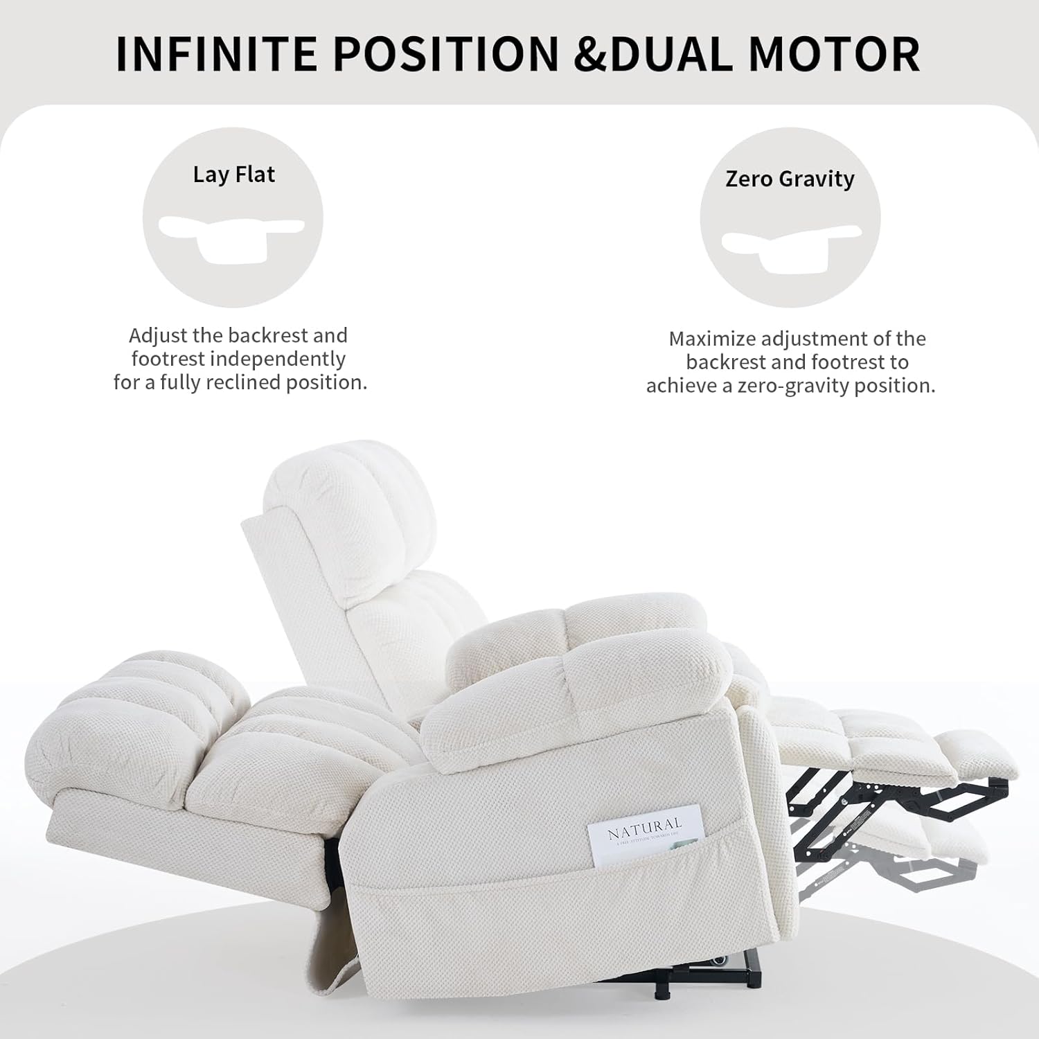 - Dual-Motor Lift Chair for Elderly:Dual-motor structure, enabling the backrest and footrest to be adjusted independently in position.The power lift recliner adjusts to any angle between 105Β°-170Β° with an easy-to-use remote control. Its counter-balanced lift mechanism gently lifts the chair to help seniors stand without straining their knees or back.